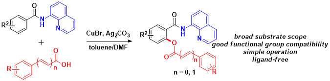 51. Yang Fang, Dongping Xu, Yingliang Yu, Rumeng Tang, Shuaishuai Dai, Zhenghua Wang and Wu Zhang*, Controlled synthesis of β-keto sulfones and vinyl sulfones under electrochemical oxidation. Eur. J. Org. Chem. 2022, 13, e202200091. 50. Yingliang Yu, Yang Fang, Rumeng Tang, Dongping Xu, Shuaishuai Dai, Wu Zhang*, Electrochemical Oxidative Sulfonylation of N-Arylamides/Amine with Sodium Sulfinates. Asian J. Org. Chem. 2022, 11(2), e202100805. 49. Dongping Xu, Yingliang Yu, Fei Huang, Shuangliu Zhou, Wu Zhang*, Photo-induced sp3 C–H functionalization for the synthesis of 3,3-disubstituted oxindoles, Asian J. Org. Chem. 2022, e202200131. 48. Lin Tang, Feng Qin, Fei Huang, Dongping Xu, Qiyan Hu, and Wu Zhang*, Magnetic Fe3O4@Ag Nanoparticles Catalyzed C–C Cross-coupling Reaction of Aromatic Alcohols, Appl. Organometal. Chem. 2022, e6723. 47. Lin Tang, Fei Huang, Dongping Xu, Xinming Zhang, Zhenghua Wang, Wu Zhang*, Flower-like Au@CeO2 Core-shell Nanospheres as Efficient Photocatalyst for Multicomponent Reaction of Alcohols and Amidines Asian J. Org. Chem. 2022, e202200147. 46. Feifan Wang, Fei Huang, Yingliang Yu, Shuangliu Zhou, Zhenghua Wang, Wu Zhang*, Monodisperse CuPd alloy nanoparticles supported on reduced graphene oxide as efficient catalyst for directed C–H activation. Catal. Commun. 2021, 153, 106296. 45. Fei Huang, Feifan Wang, Qiyan Hu, Lin Tang, Dongping Xu, Yang Fang and Wu Zhang*, Monodisperse CuPd alloy nanoparticles as efficient and reusable catalyst for the C (sp2)–H bond activation. Appl. Organometal. Chem. 2021, e6236. 44. Qin Feng, Tang Lin, Huang Fei, Li Xiaoyue, Zhang Wu*. Copper-Catalyzed Three-Component Synthesis of Quinolines via Oxidation and Aza-Diels-Alder Reaction. Chin. J. Org. Chem. 2021, 41, 318–324. 43. Feifan Wang, Xiaoyue Li, Zhongyu Li, Shuangliu Zhou, and Wu Zhang*, Copper salts/TBAB -catalyzed chemo- and regioselectivity β-C( sp3) –H acyloxylation of aliphatic amides. ACS Omega, 2019, 4, 1, 331–343. 42. Tianchao Shi, Feng Qin, Qian Li, Wu Zhang*, Copper-catalyzed three-component synthesis of pyrimidines from amidines and alcohols. Org. Biomol. Chem., 2018, 16, 9487–9491. 41. Qiyan Hu, Xiaowang Liu*, Fei Huang, Feifan Wang, Qian Li,Wu Zhang*, Ag1Pd1-rGO nanocomposite as recyclable catalyst for CDC reactions of 2-arylpyridines with aldehydes. Catalysis Communications, 2018, 113, 27-31. 40. Feifan Wang, Zhiyang Lin, Weisheng Yu, Qingdong Hu, Chao Shu and Wu Zhang*, Copper-catalyzed C–H acyloxylation of 2-phenylpyridine using oxygen as the oxidant. RSC Adv. 2018, 8, 16378–16382. 39. Liang Liu, Lei Song, Yujun Guo, Dewen Min, Tianchao Shi,Wu Zhang*, Cyclization and oxidation of o-bromophenylacetamides for the synthesis of oxindoles and isoindigoes, Tetrahedron, 2018, 74, 354-359. 38. Lin Tang, Chaoting Wu, Qiyan Hu, Qian Li and Wu Zhang*, Cross‐coupling reactions using porous multipod Cu2O microcrystals as recoverable catalyst in aqueous media. Appl. Organometal. Chem.2018,32, e3980. 37. Qiyan Hu, Xiaowang Liu*, Guoliang Wang, Feifan Wang, Qian Li and Wu Zhang*, Ag1Pd1nanoparticles-reduced graphene oxide as highly efficient and recyclable catalyst for direct aryl C–H olefination, Chem. Eur. J. 2017, 23, 17659–17662. (hot paper, cover feature) Highlighted by Synfacts 2018, 14, 0328. 36. Feifan Wang, Qiyan Hu, Chao Shu, Zhiyang Lin, Dewen Min, Tianchao Shi and Wu Zhang*, Copper-Catalyzed Direct Acyloxylation of C(sp2)–H Bonds in Aromatic Amides. Org. Lett. 2017, 19, 3636–3639.
