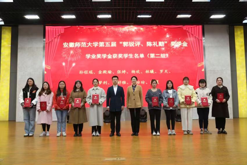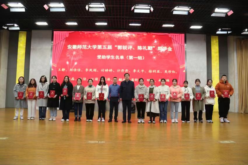 第五届“郭锐评、陈礼勤”奖助学金的决定》。嘉宾们分5个批次共15组向209名获奖、受助学生颁发奖助学金获奖证书。