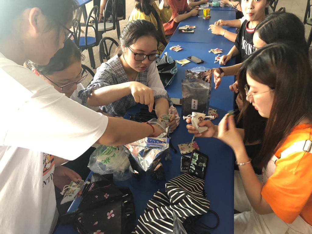 活动第一项是装香囊,香囊的填料是需要自己配制的,每个香囊的香料配比都是同学们自己的创作,都是每个人独一无二的创造。
