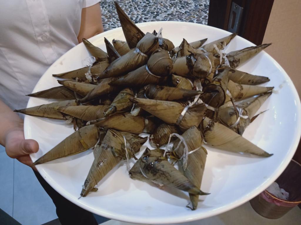 哒哒哒,是文艺委员带着雄黄酒来啦,端午怎么能少的了雄黄酒呢?!然后我们随机抽取幸运小樱花,用雄黄酒在他们的额头写了个“王”字,寓意丰富,一是借雄黄消毒,二是驱逐猛兽。一环扣一环,压轴的粽子上场啦,暖心班委为每位可爱的小樱花准备了口味各异的粽子,大家幸福的吃着粽子,喜悦之情溢于言表。