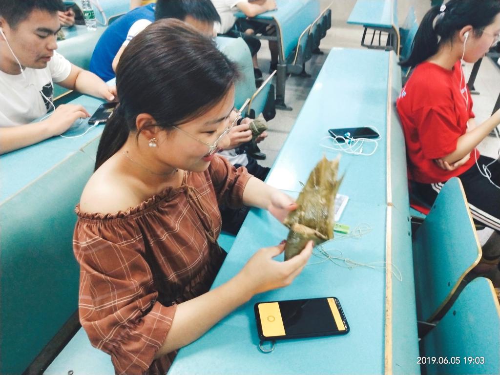 本网讯(应化二班 王皓月)2019年6月6日,在18应用二班班委会的组织下,班级全体同学齐聚于2010308开展了端午节主题活动,旨在共庆佳节,提升班级凝聚力。