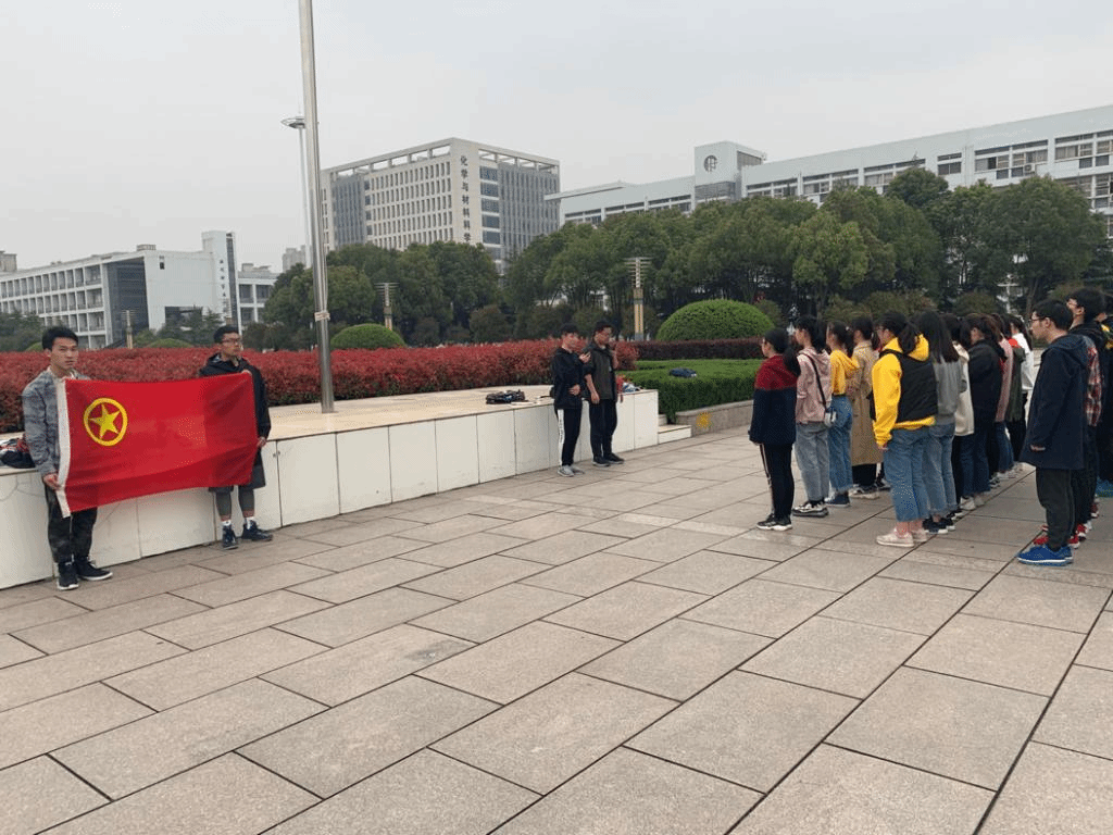 本网讯 (应化一班 花雯昕)2019年10月9号下午4点,2018级应用化学一班在国旗下开展了关于“我与祖国共奋进”的主题团日活动。本次活动是为了激励和引导广大青少年大力弘扬爱国主义精神,矢志投身决胜全面建成小康社会、夺取新时代中国特色社会主义伟大胜利的新征程。