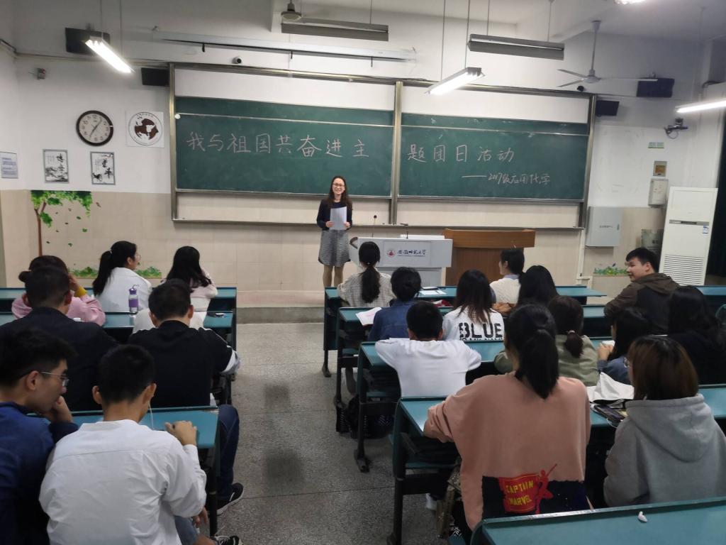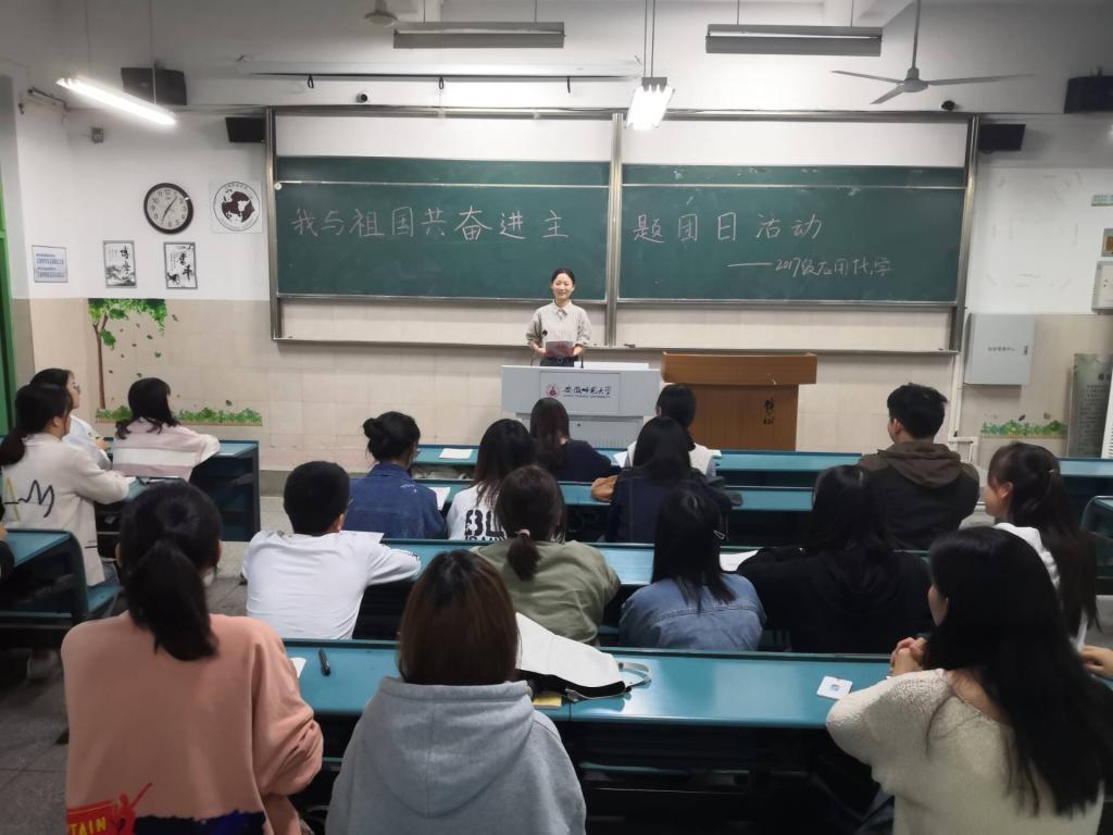 (图文:马磊)10月13日,2017级应用化学专业全体班委在行知楼2040103教室开展我与祖国共奋进主题团日演讲活动。
