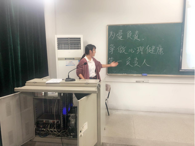 本网讯(18 材料化学 王祖豪) 为积极响应10·25心理健康月的号召,为了增强大学生心理健康意识,帮助同学们发现并解决自身的心理健康问题,18级材料化学二班所有同学10月22晚七点四十五在2070308教室开展了“为爱负责,争做心理健康第一负责人”的主题班会,班会由心健委员郑奥主持。