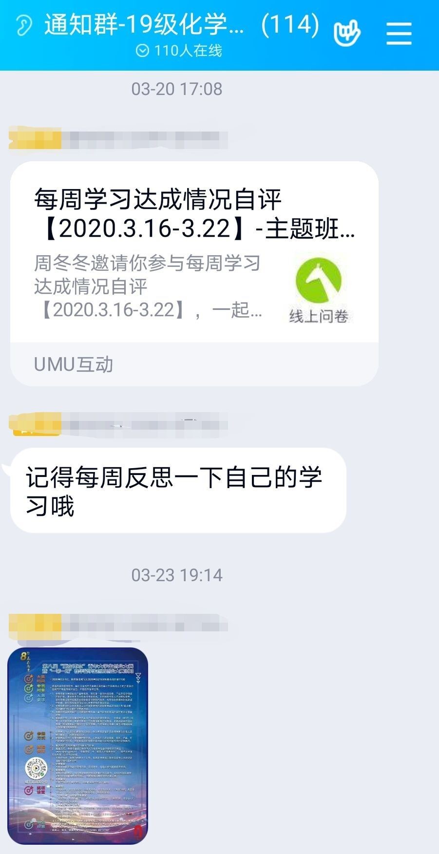 “调查问卷如一盏警钟给我们以思索,甚至比以前更客观,更清晰地认识到大学生应有之义。”化学类二班一同学感慨道。“学而不思则罔,思而不学则殆”,每周班级同学的每周学习达成情况反思就是这句哲言的正面诠释,给班级的教学质量和落实情况得到了监督作用,在家学,亦能学入吾心。