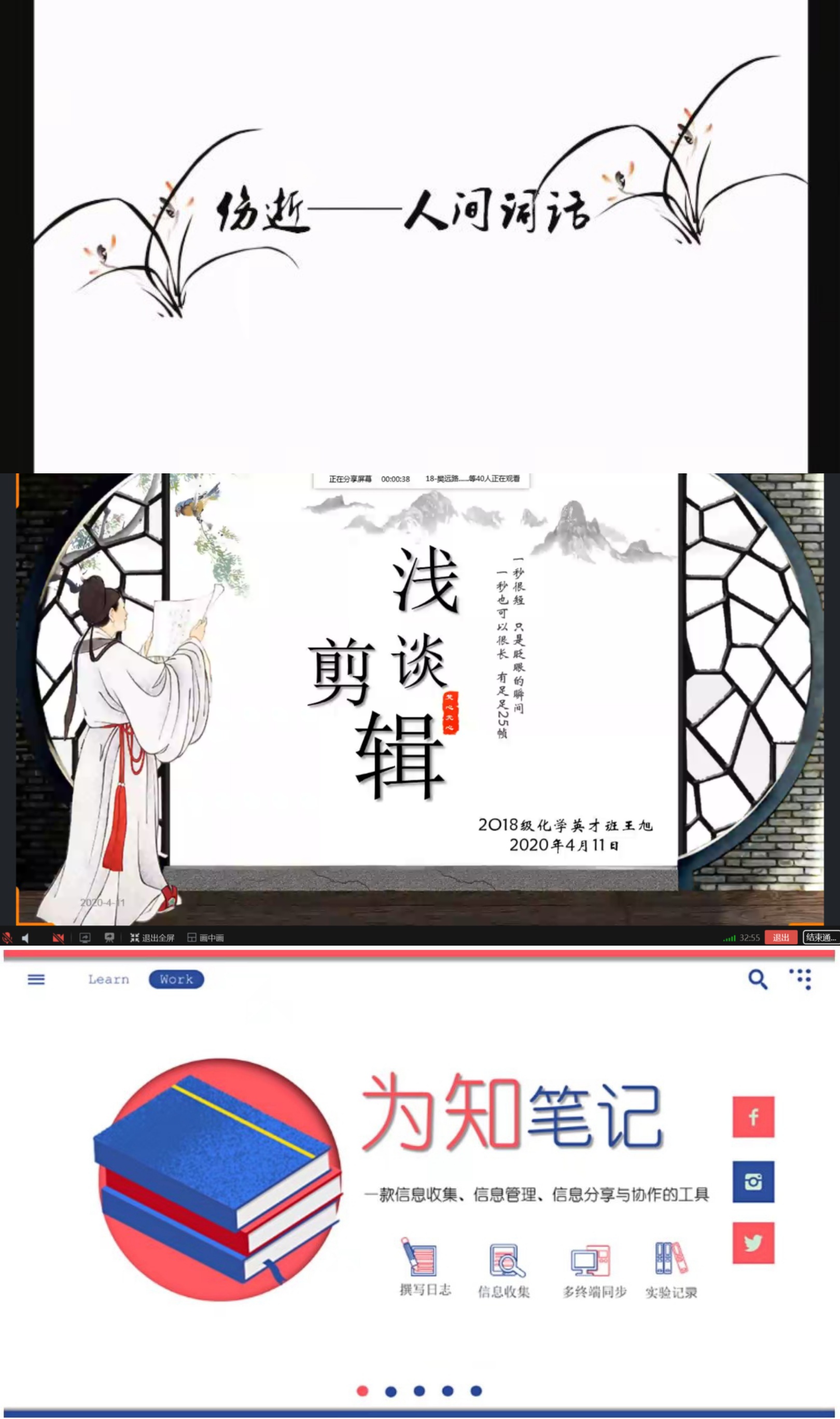 团支部联系实际,在辅导员指导下,经班委会商议,将“青春物语·与你共享时光”班级特色活动形式转变为线上屏幕“云”共享。活动开展前,宣传委员通过宣传平台推出节目预告。活动期间,由班委会成员轮流担任主持人,发挥“纽带”作用。活动结束,针对活动内容进行线上提问、有奖竞答,即使不能见面,也能感受到来自班级的温暖。“青春物语”活动旨在让每位同学都有机会在分享中锻炼自我表达能力,在交流中碰撞创造新思想,在乐于分享或善于倾听中看见诗词歌赋,琴棋书画,技能知识等。为了扩大“分享”这一主题,我班利用哔哩哔哩平台转播活动实况,让更多或错过,或回味,或好奇的人参与进来,感受当代大学生的青春风采。