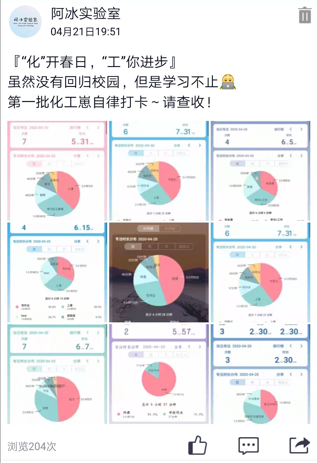 “化工云时间”是一个新概念,它依托网络,视频,声音和图片将散落在五湖四海的同学们紧密关联,产生类似于面对面的化学反应。它以同学们为主体,化工班级官方QQ——阿冰实验室为载体,旨在联系化工班集体,传递正能量。这个环节展现了难能可贵的温暖,包容与趣味,化工云时间是化工班级同学的情感纽带,是淤泥地里拾到的星。