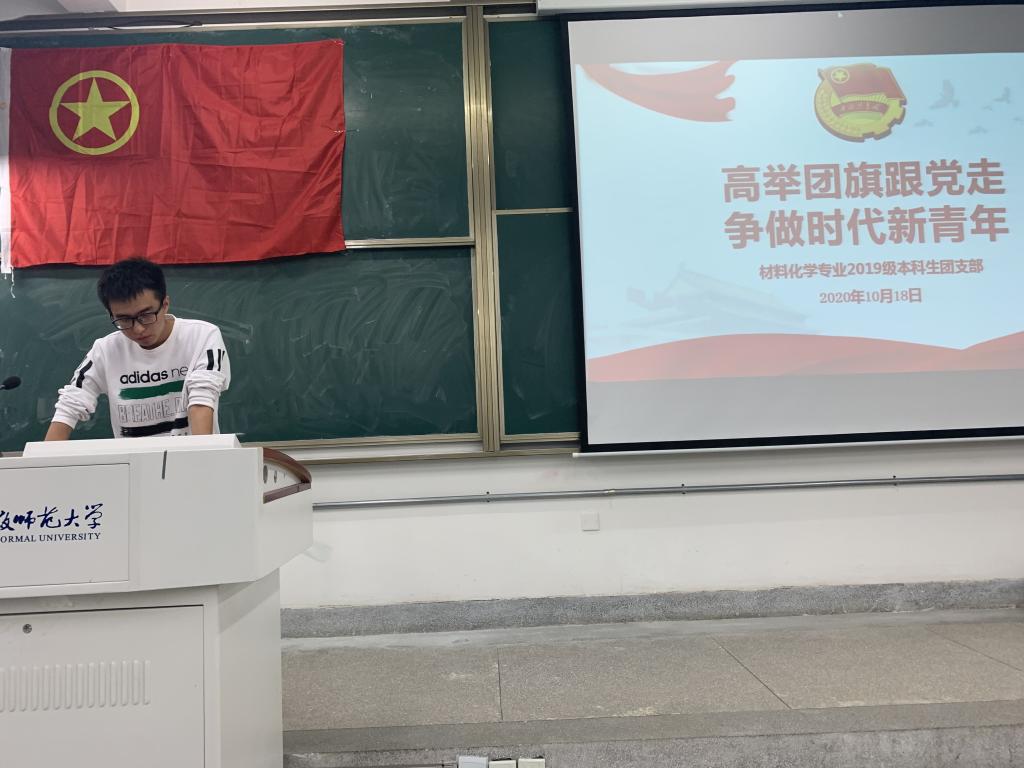 本网讯(19级材料化学唐丽君)2020年10月18日晚,在2070201教室2019级材料化学专业举行本学年第一次团支部大会,本次团支部大会由19级材料化学团支部书记王林新主持。