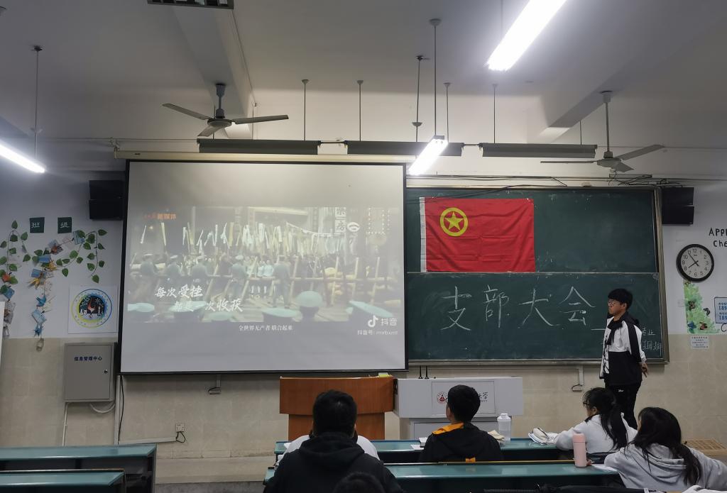 团支书董哲语围绕“学党史、强信念、跟党走”这一主题,通过一段由人民日报特别策划发布的的建党百年主题视频,引出本次大会的第一项——学习习近平总书记《论中国共产党历史》。团员青年代表李敏约和李建峰2位同学进行了发言,分享了自己对于党团学习的经验和体会,并鼓励同学们以史为鉴,向优秀的先辈们学习,在学习和生活中接续奋斗。收获了同学们赞同的掌声。