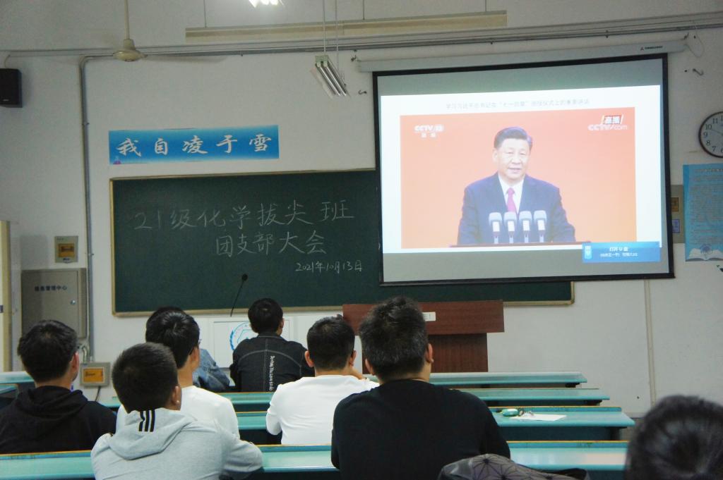21级化学拔尖班开展了第一次支部团员大会。本次大会由班级团支部书记孙世杰主持,以“请党放心,强国有我”为主题,带领同学们学党史、悟思想,更加坚定的学习贯彻党的创新理论,明确同学们作为新时代新青年的使命和责任。会上还进行了支部委员会委员选举,通过同学发表竞选演讲、民主投票的形式,选举产生了三名支部委员会委员,增强了同学们之间的组织力和凝聚力。