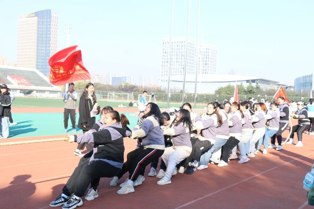 学子在北体育场积极参加“铿锵玫瑰”女子拔河比赛。
