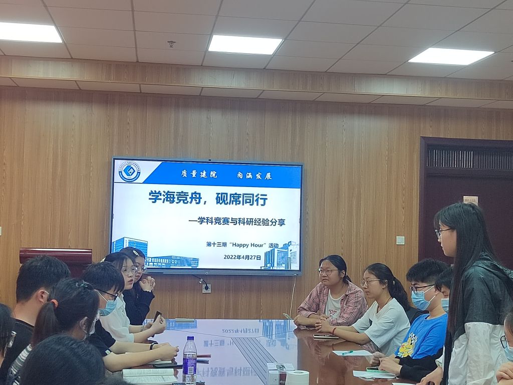 依托“Happy hour”品牌系列活动,顺利举办此次学科竞赛与科研经验分享会,本次活动提供了交流参赛经验的平台,为学生今后的参赛事宜指引新方向,营造出浓厚的科技创新与学科竞赛的学习氛围。