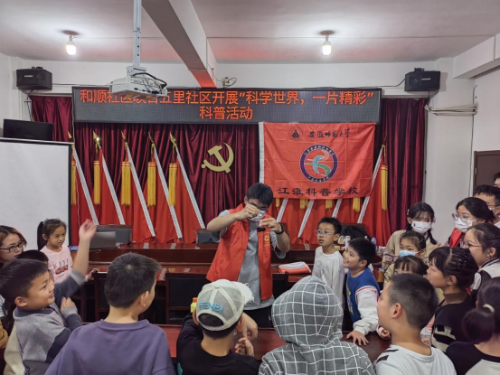 江淮科普学校前往南陵和顺社区开展“科普化学知识,探索神秘高锰酸钾”活动,和青少年分享趣味化学,激发小朋友们的学习热情,培养小朋友们对化学的热爱。