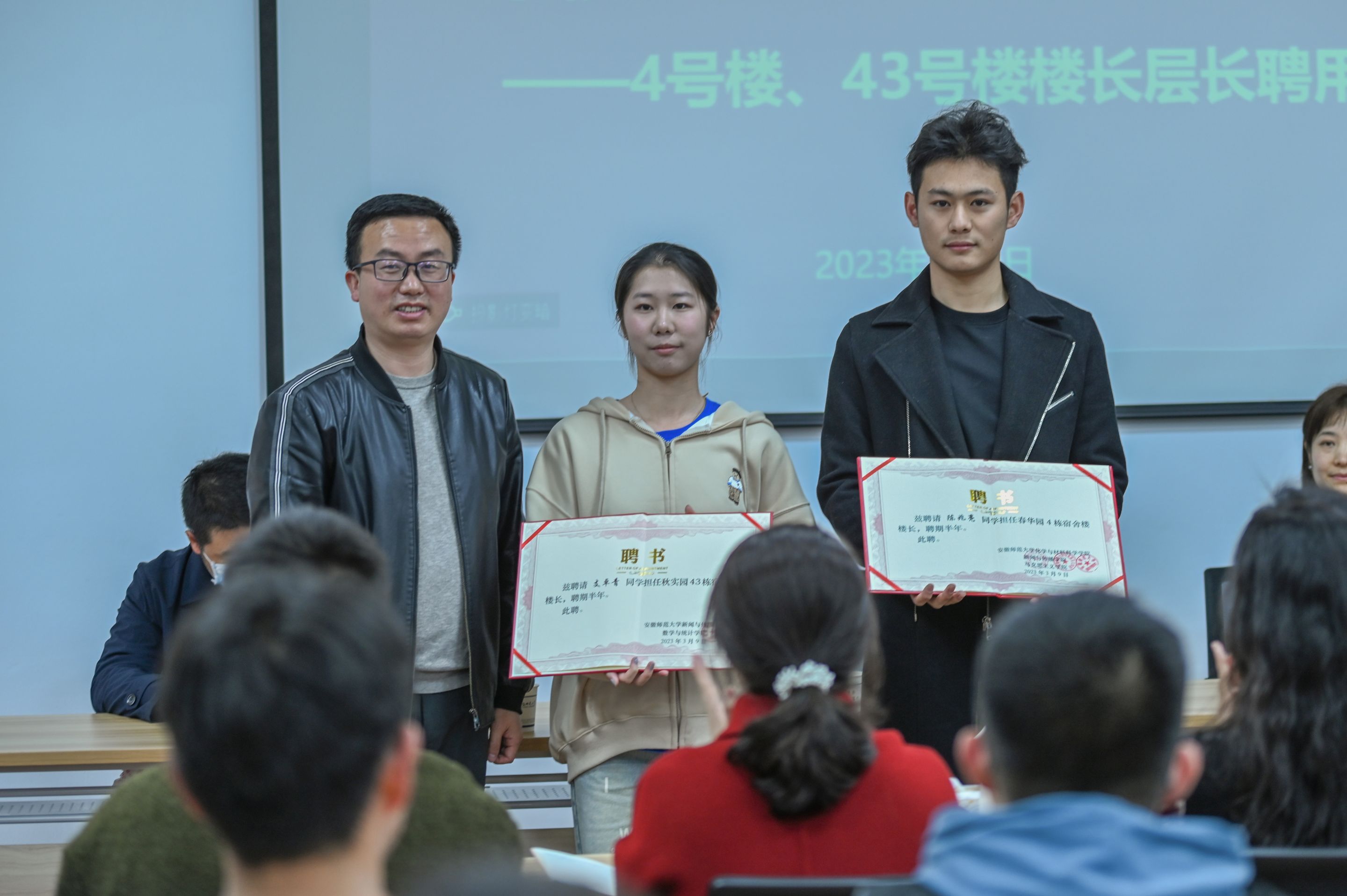 会上,刘玉艳宣读了《关于聘任4号楼、43号楼楼长层长的决定》,吴青山、刘玉艳为受聘的楼长、层长颁发聘书。
