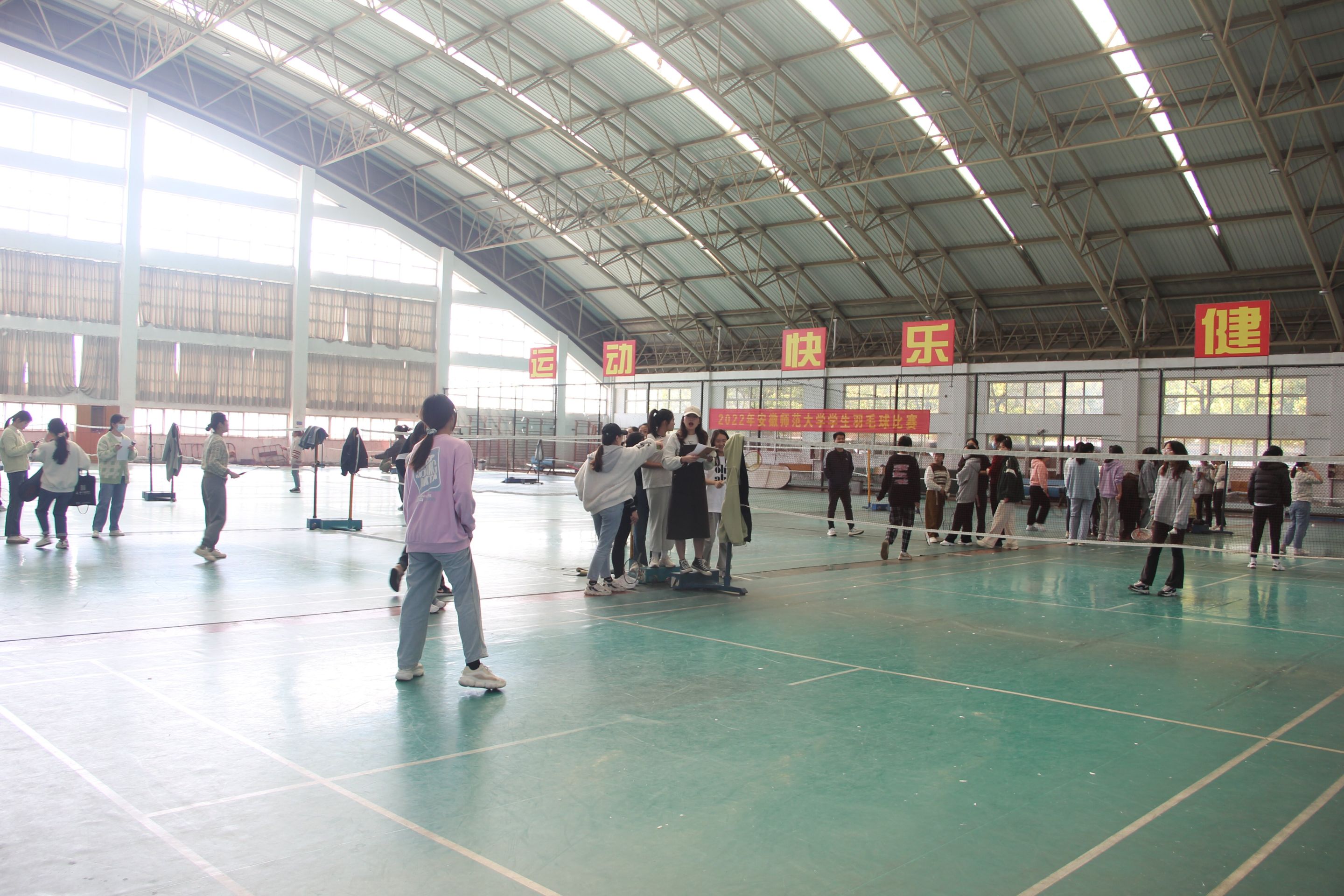 于花津校区南体羽毛球馆、礼勤楼一楼羽毛球场举办研究生羽毛球比赛,我院近130位研究生参与此次比赛。