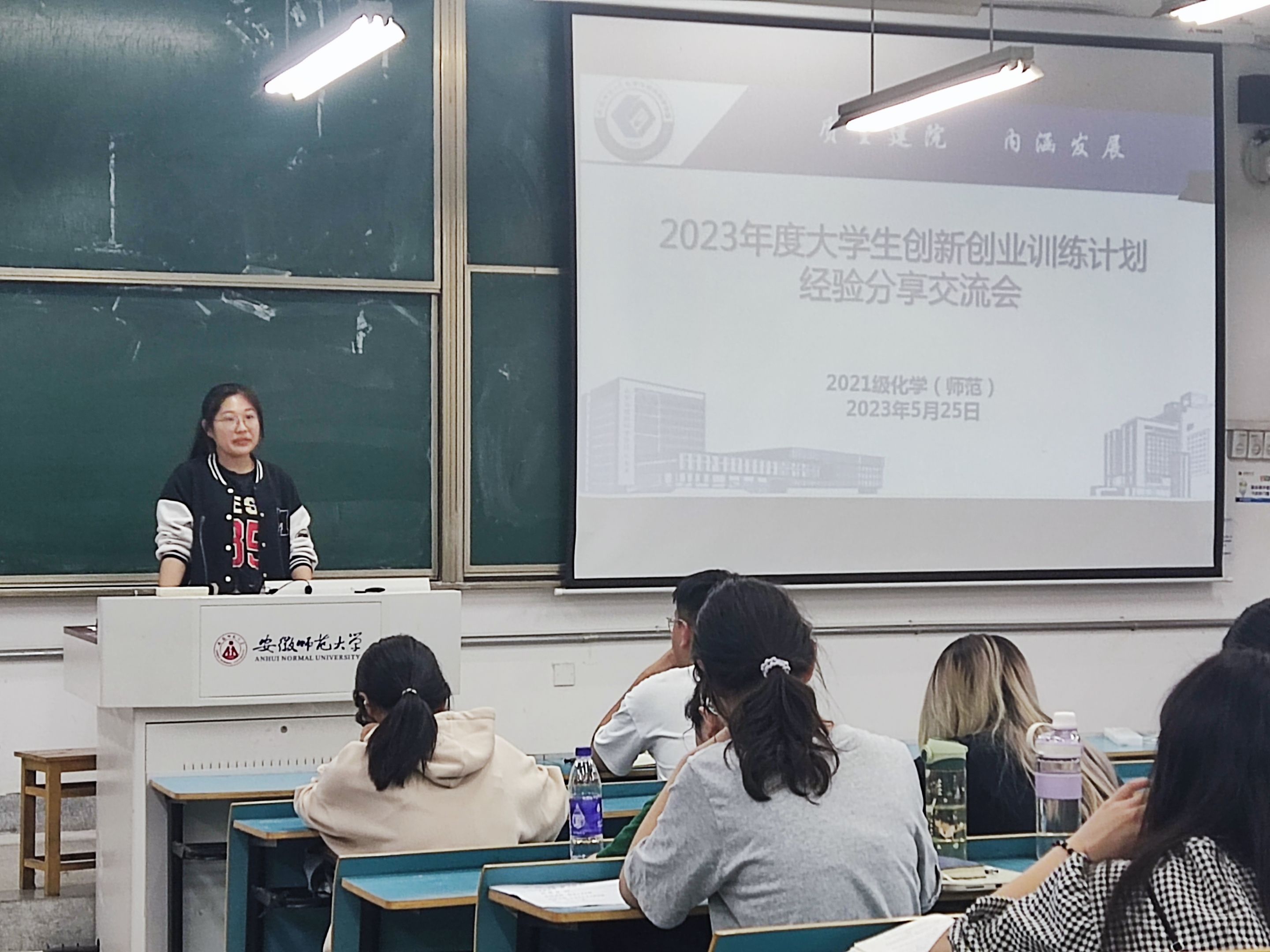 江鑫滢、陶勇)为了帮助化学师范专业学生更加清晰地了解大创相关信息,了解如何应对大创开展过程中遇到的各类问题,2023年5月25日在20702021教室,辅导员陶勇组织2021级化学师范专业2、3、4班全体同学开展了“大学生创新创业训练计划”经验分享交流会。本次分享会邀请了2019级化学师范专业贾金名、王宇阳进行经验分享。