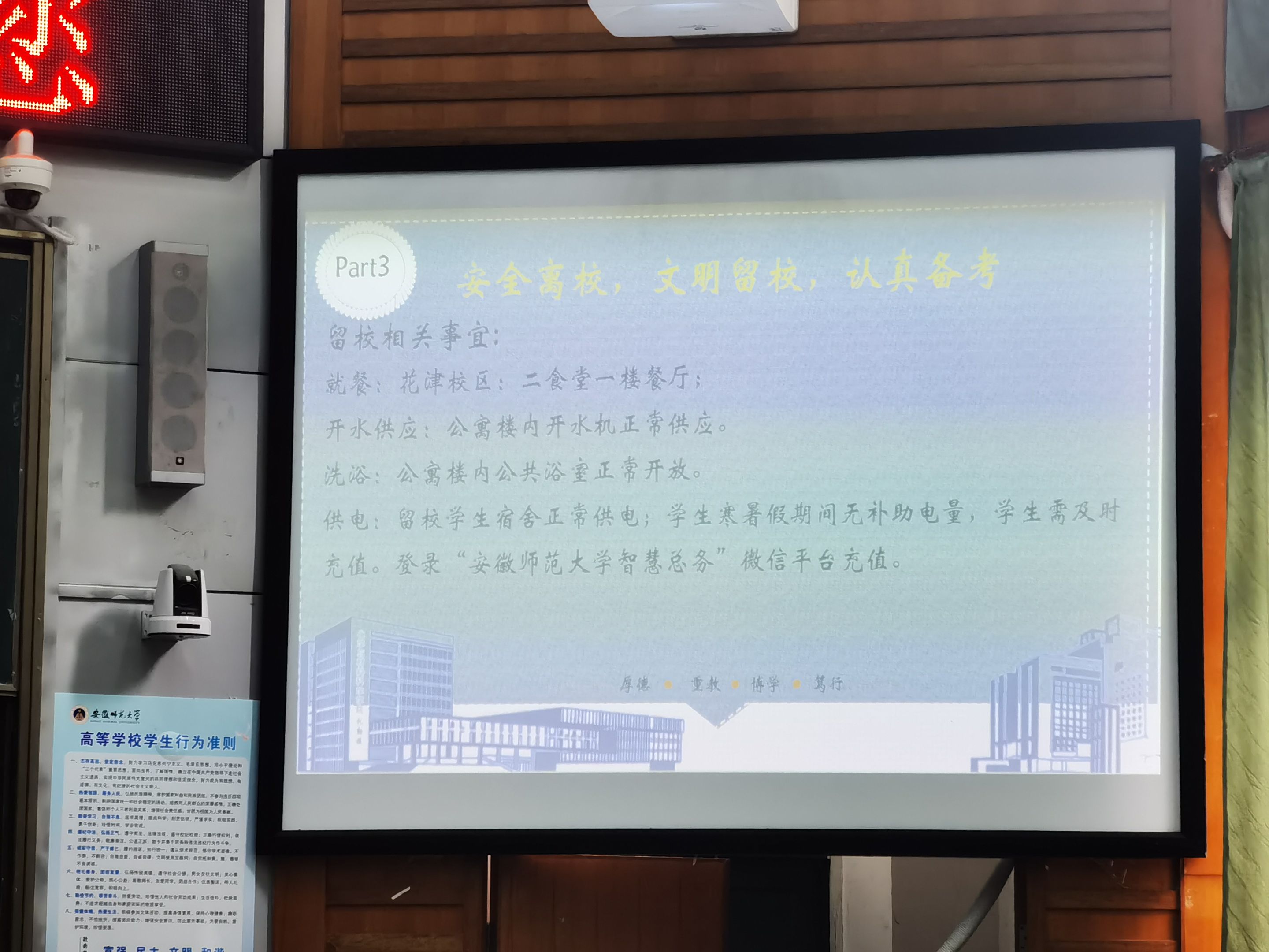 本次班会详细介绍了暑期留校事宜、电动车规范管理及考风考纪教育,对考研形势的研判和数据的分析,有利于营造“压力与动力并存”的良好考研氛围,塑造新时代大学生形象,希望大家认真复习期末,准备考研,保持良好的心态,有计划有安排地向目标前进!