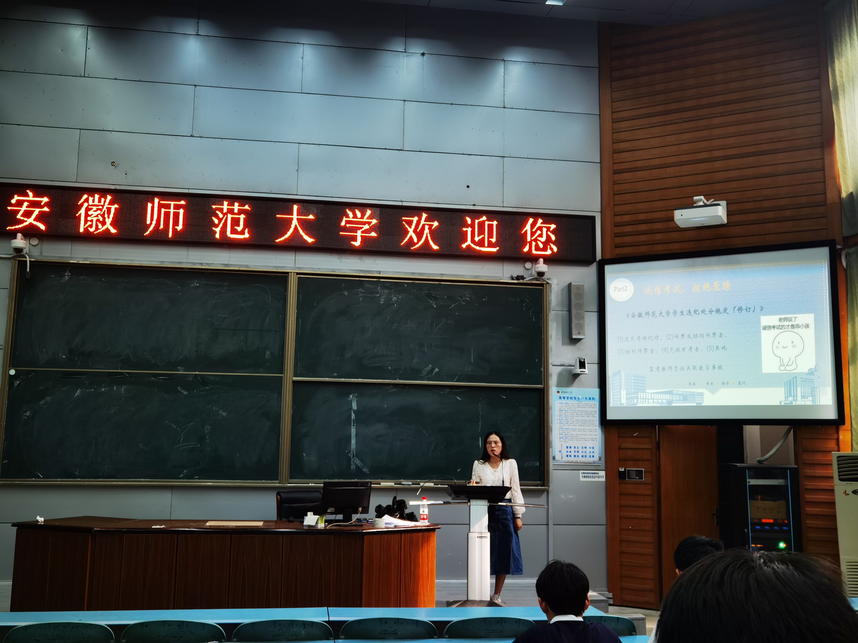 邓乐君、王芳)为切实做好2023年暑假留校学生安全教育,提高留校学生的安全防范意识,保证在校备战考研的效率,维护学校安全稳定,6月15日下午在行知楼1号楼105教室召开了以“暑期安全离校、文明留校暨诚信考试教育”为主题的班会,班会由2020级专职辅导员王芳主持,20级化师、化非、应化在校学生到场参加。