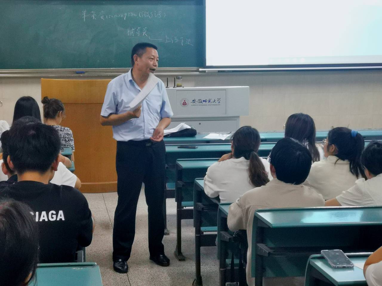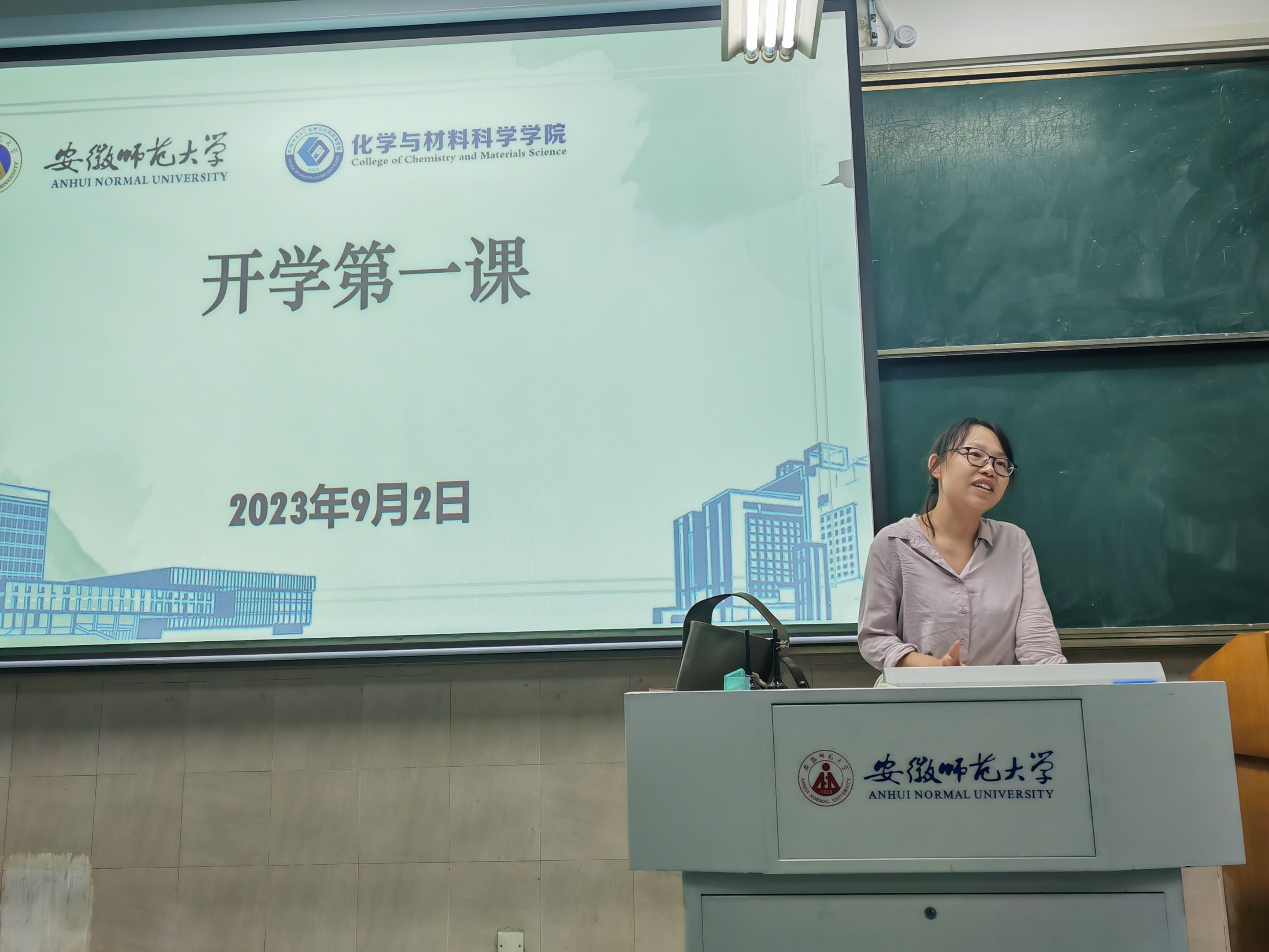 于行知楼2020101、2020102教室分专业召开2023级研究生开学第一课,班会分别由2023级研究生辅导员朱英贵、张薇主持。