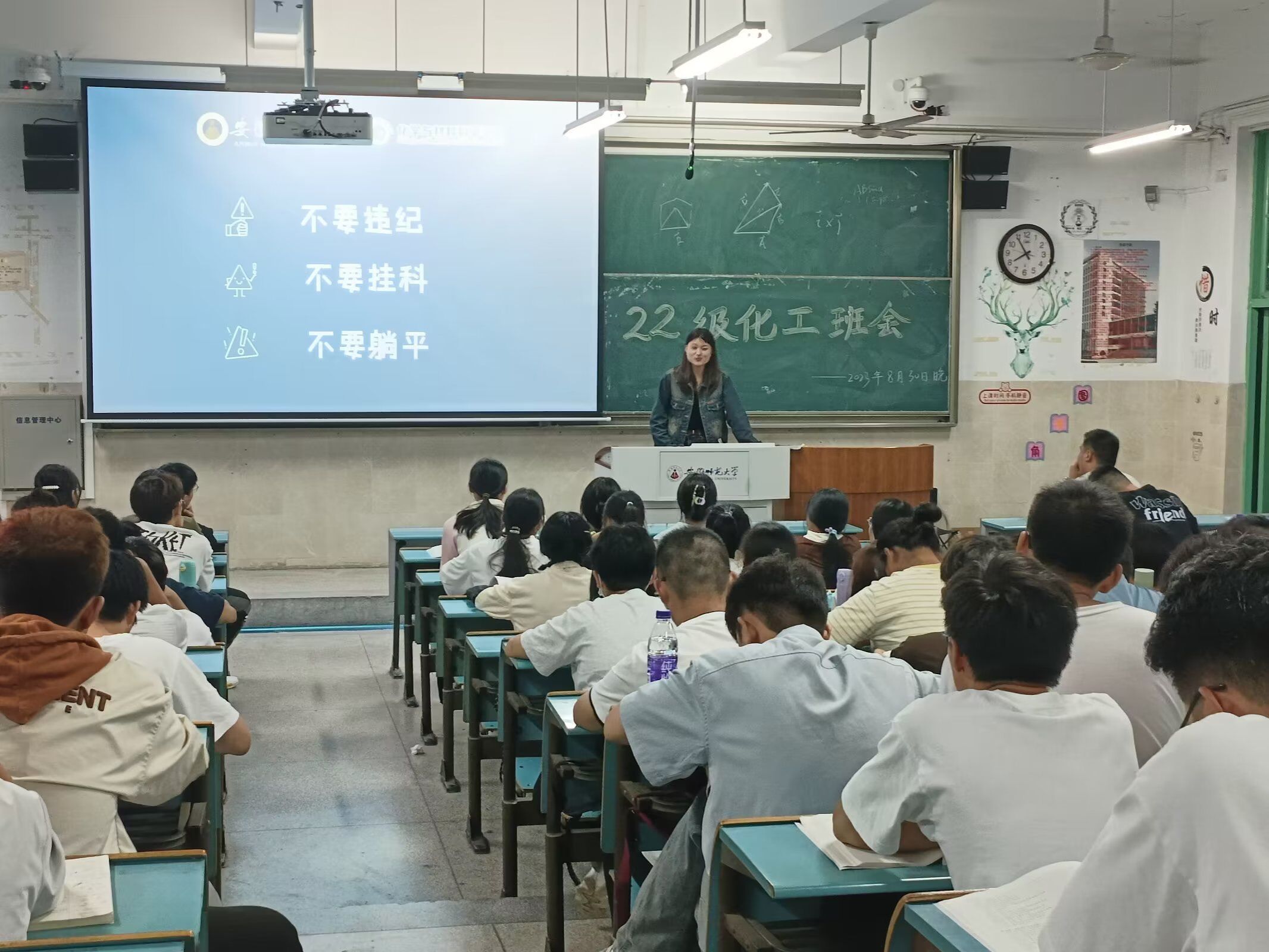 朱梦茹)为帮助同学们尽快适应开学后的学习和生活,不忘入学时的初心,努力学习,以最好的状态迎接新的学年,2023年8月30日晚,2022级化学工程与工艺专业全体同学在2010308教室参加了“新学期,不忘初心”——开学第一课主题班会,会议由辅导员朱梦茹主持。