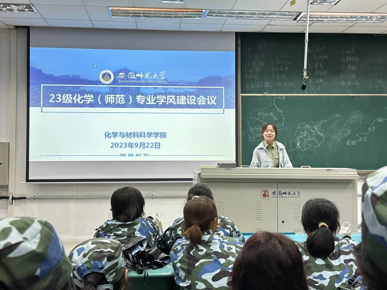 郜子闻、王霞)为进一步加强班级学风建设,完善班委体系,9月22日下午,化学师范专业在行知楼2070101和2070401教室召开了新学期学风建设暨班委竞选布置会,会议由辅导员王霞主持,全体化学师范专业新生参会。