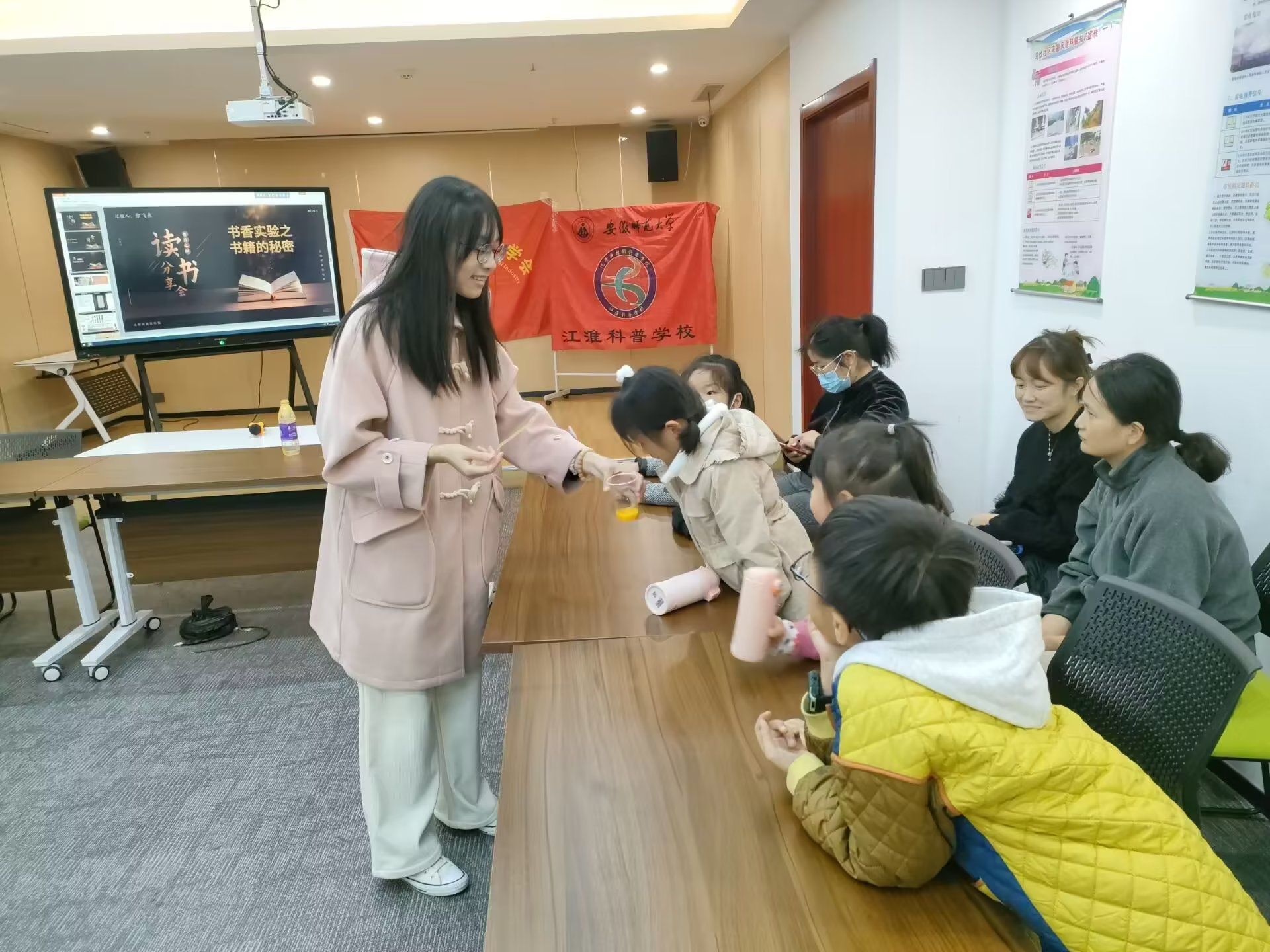 本网讯(江淮科普学校高洁、张宇欣)书是人类进步的阶梯,为了让小朋友们更好地了解书籍的重要性以及在日常生活中我们每个人应该如何去爱护书籍,拓展小朋友们的知识面,激发小朋友们对读书的兴趣和爱护书籍的心理,2023年11月11日下午,江淮科普学校志愿服务组织成员来到马饮书屋开展“书香实验之书籍的秘密”活动。