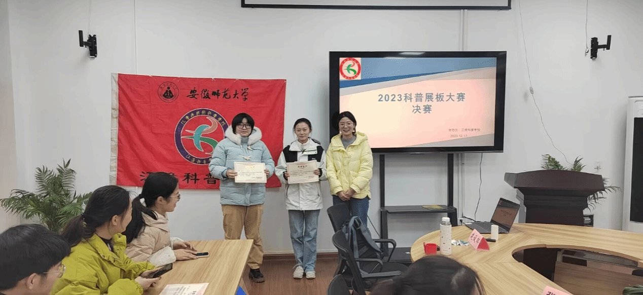 陈康、张宇欣)为激发学生对生活中神奇现象的探索欲,产生对科普活动的热爱。12月17日下午江淮科普学校于学苑北楼9号楼205会议室举办了2023年度科普展板决赛,本次活动邀请了江淮副校张婧如、主席团史若雨、环协会长王辰宇和江淮各部门部长担任本次的评委,2022级、2023级部分学生参加本次决赛。