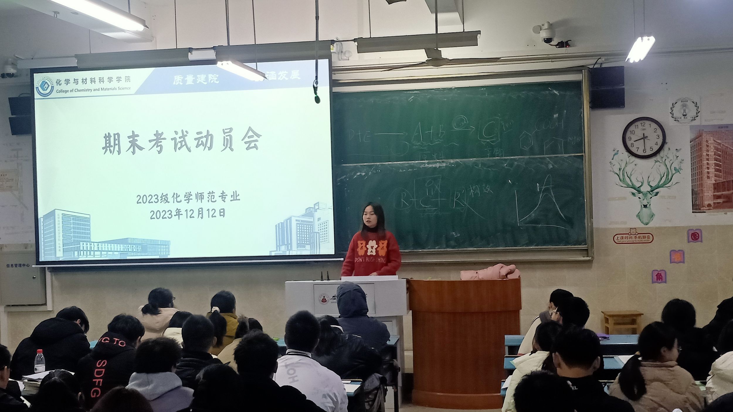 本网讯(张宏亮 王霞)为鼓励同学们积极应对期末考试,端正考风考纪,2023级辅导员王霞老师于12月12日晚,开展了23级化师专业期末考试动员会,此次会议23级化师专业全体学生参加。