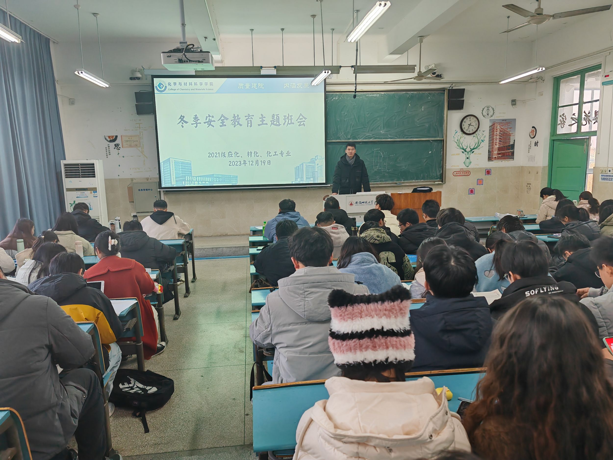为引导学生增强冬季安全意识,提升网络文明素养,12月19日,2021级材化、应化专业在行知楼2010302教室召开冬季安全教育主题班会。
