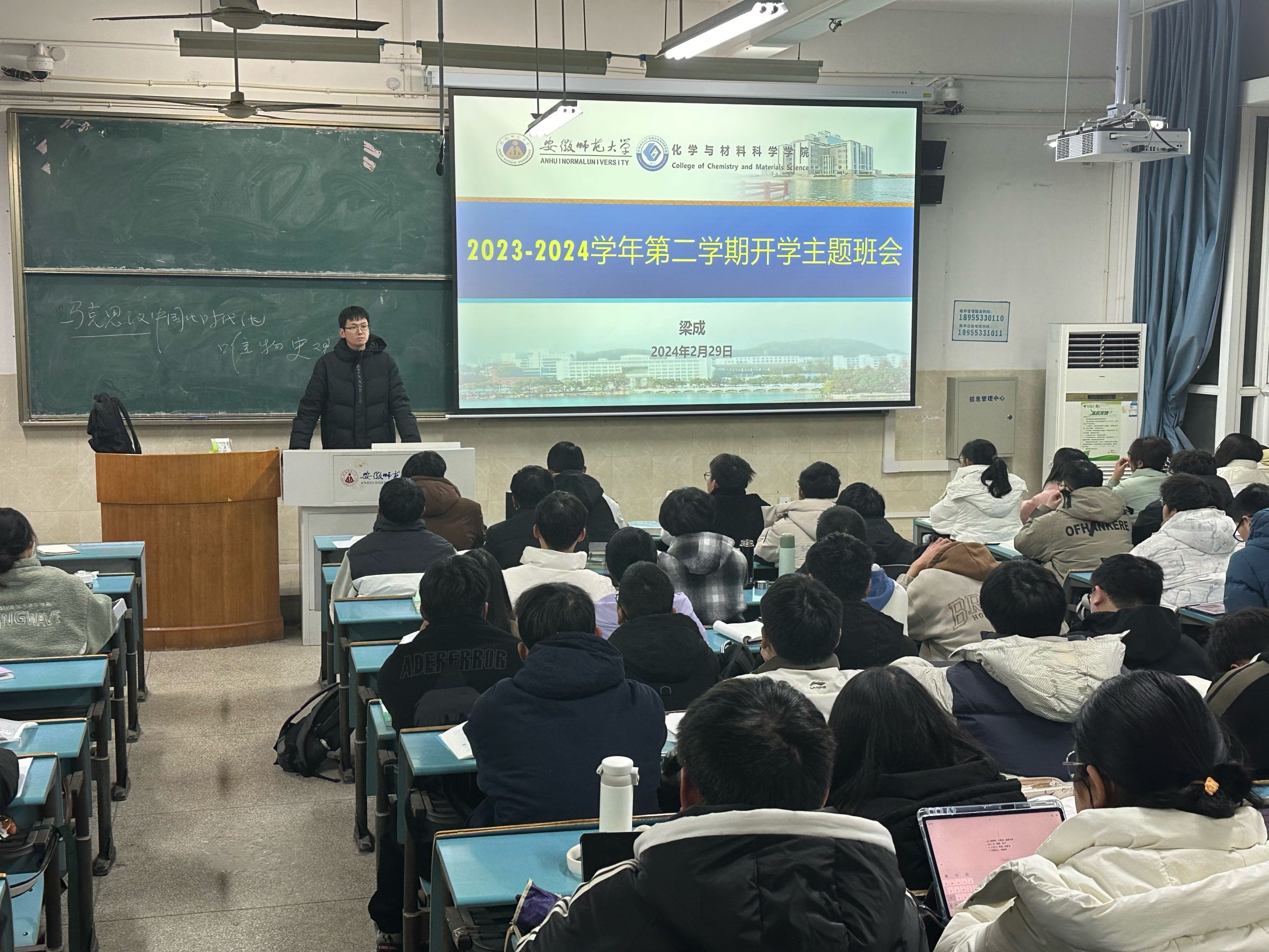 为扎实做好新学期学生教育工作,确保学生健康安全的学习生活秩序,引导同学们尽快融入新学期生活,明确新学期的目标和要求,形成良好的学风、班风,2月29日晚,2023级化学工科专业召开2024年春季学期主题班会,班会由辅导员梁成主持。