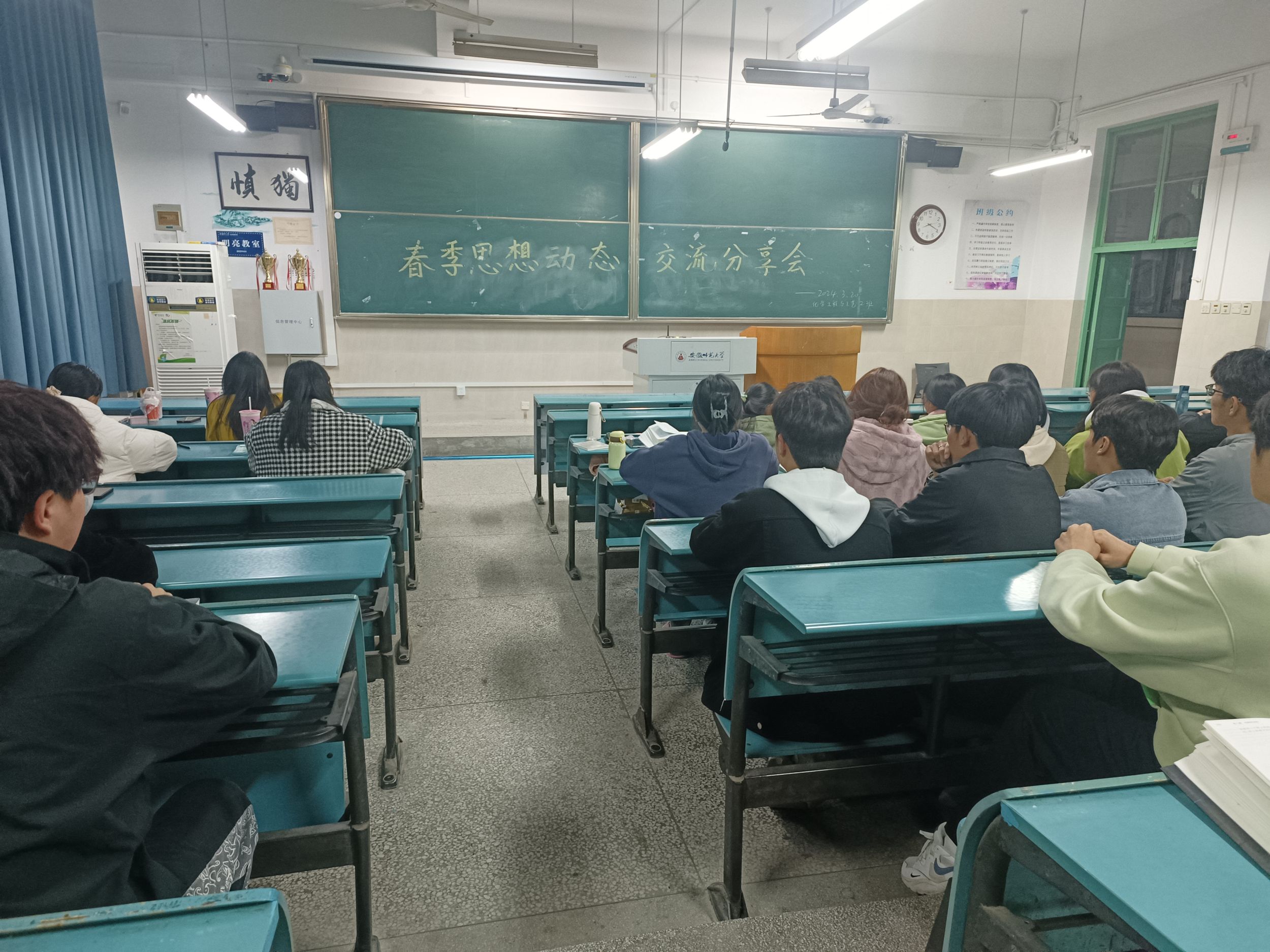 郁妍)2024年3月20日,化学工程与工艺专业在固定教室2号楼302开展了春季交流分享会,本次会议的主持为辅导员朱梦茹老师。本次会议旨在了解开学以来学生在学习、宿舍生活上等各方面情况,采集相关数据,进一步改善和提升学生工作。