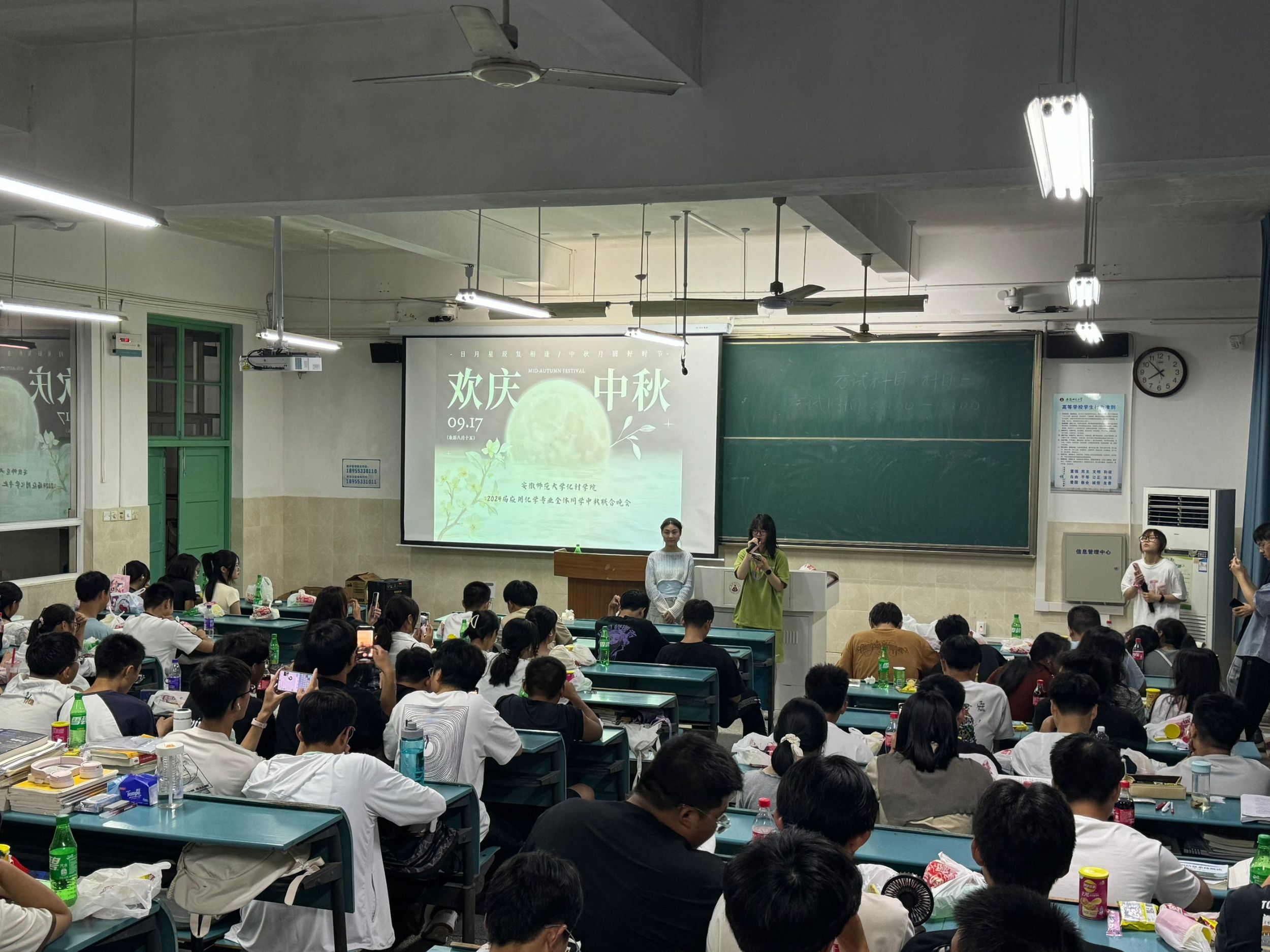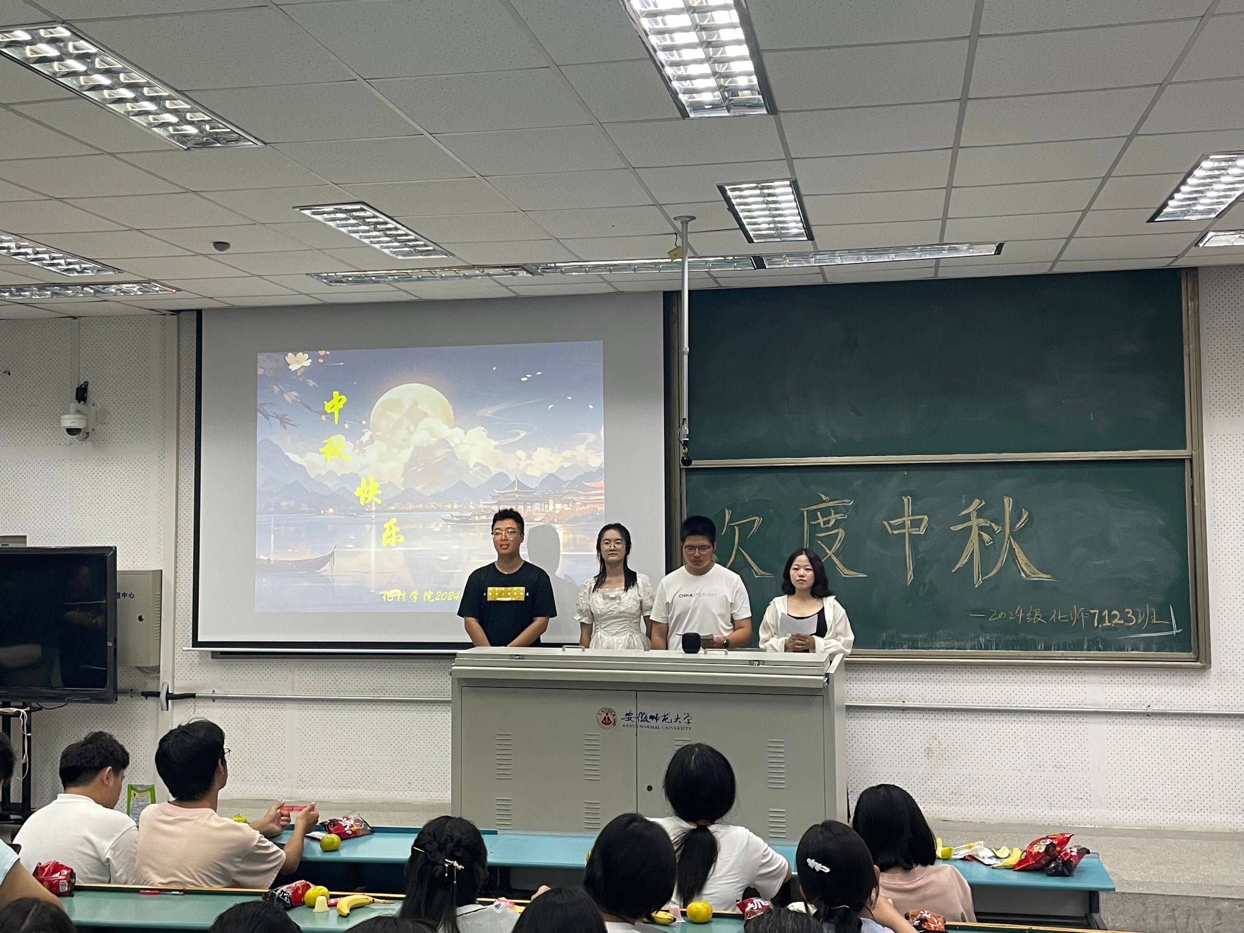 2024级本科660名新生分专业班级在教室举办中秋晚会,同学们欢聚一堂,各显身手,充分展示了新时代大学生的才艺与激情,为大家带来了一场充满欢乐和感动的视听盛宴。