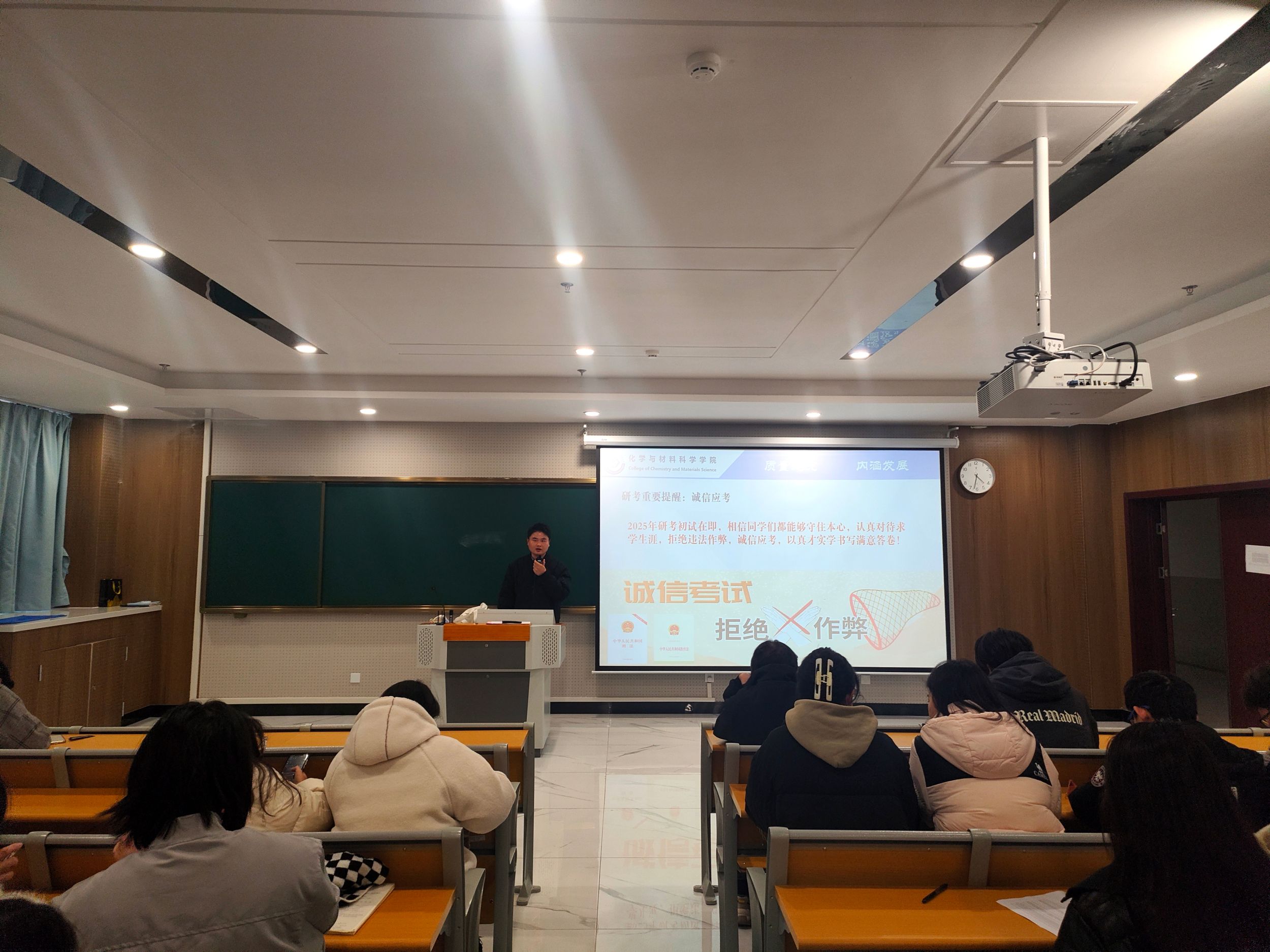 接着,陶勇就考点提醒向同学们进行了详细说明,重点围绕考试当天的注意事项进行了说明,帮助同学们提前熟悉考试环境,做好充分准备。此外,他还提醒同学们注意天气变化,合理安排饮食和作息,保持良好的身体状态和精神状态。