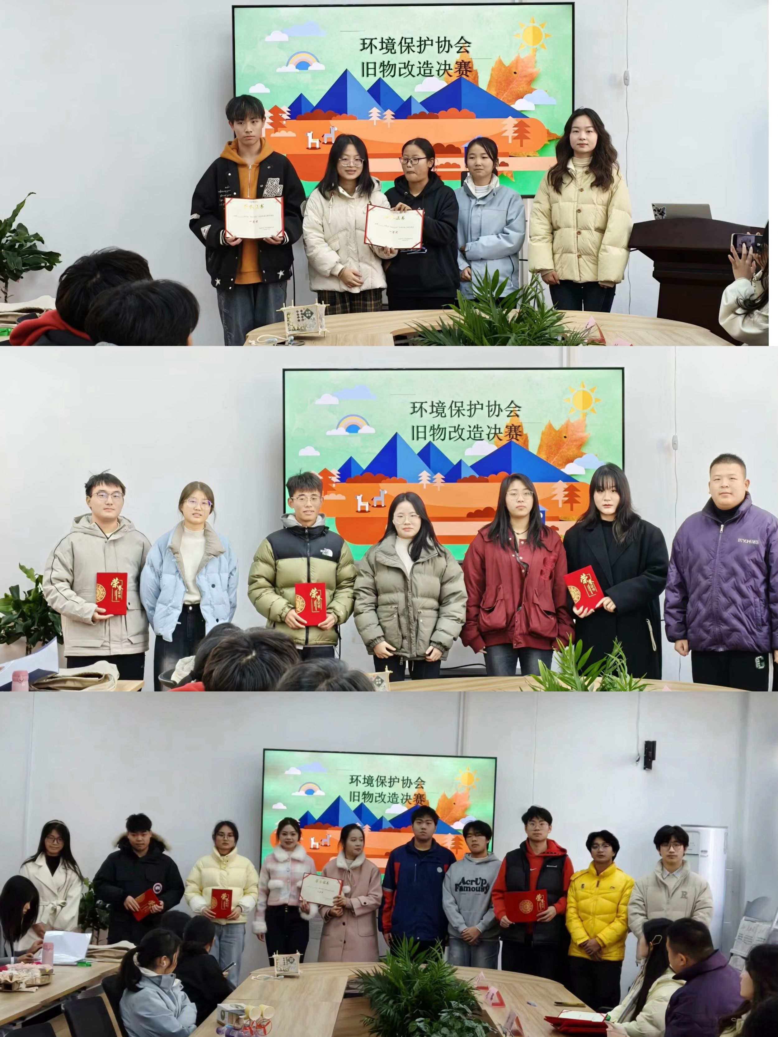 活动在校园内引起了广泛关注,吸引了来自不同年级的百余名学生参与。有的以小组为单位,利用课余时间收集废旧物品,如塑料瓶、旧衣物、废纸板等,通过团队合作,将这些看似无用的废弃物品转化为实用且美观的新物品,也有不少同学选择了独自行动,用其独特的创新思维让旧物焕发新光彩。本次活动线上征集,线下评选,分为了预赛和决赛两个阶段进行—预赛将所有作品进行海选,最终较为突出的十队进入决赛;决赛则采取线下打分制度,由环协指导老师及团委学生会、社团负责人担任评委进行评选,他们根据作品的创新性、实用性、环保性和美观性进行综合评分。最终得奖的作品不仅美观大方,也更体现了对自然生态的尊重和保护。