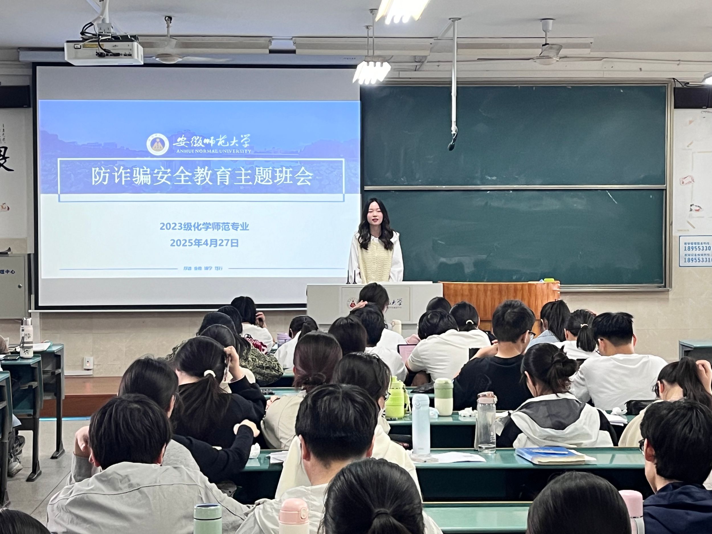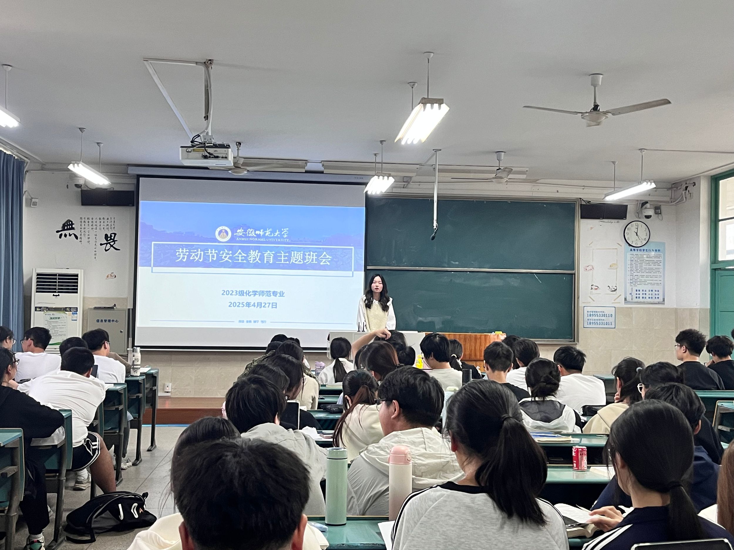 为加强学生五一假期安全意识,4月27日,2023级化学师范专业各班级于行知楼1号楼各教室分班级召开了五一安全主题教育会议,全体学生参加。