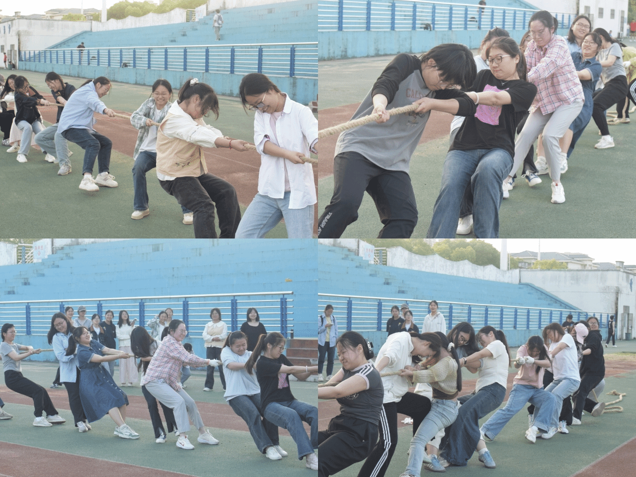 在花津校区南侧操场举办“铿锵玫瑰”拔河比赛。