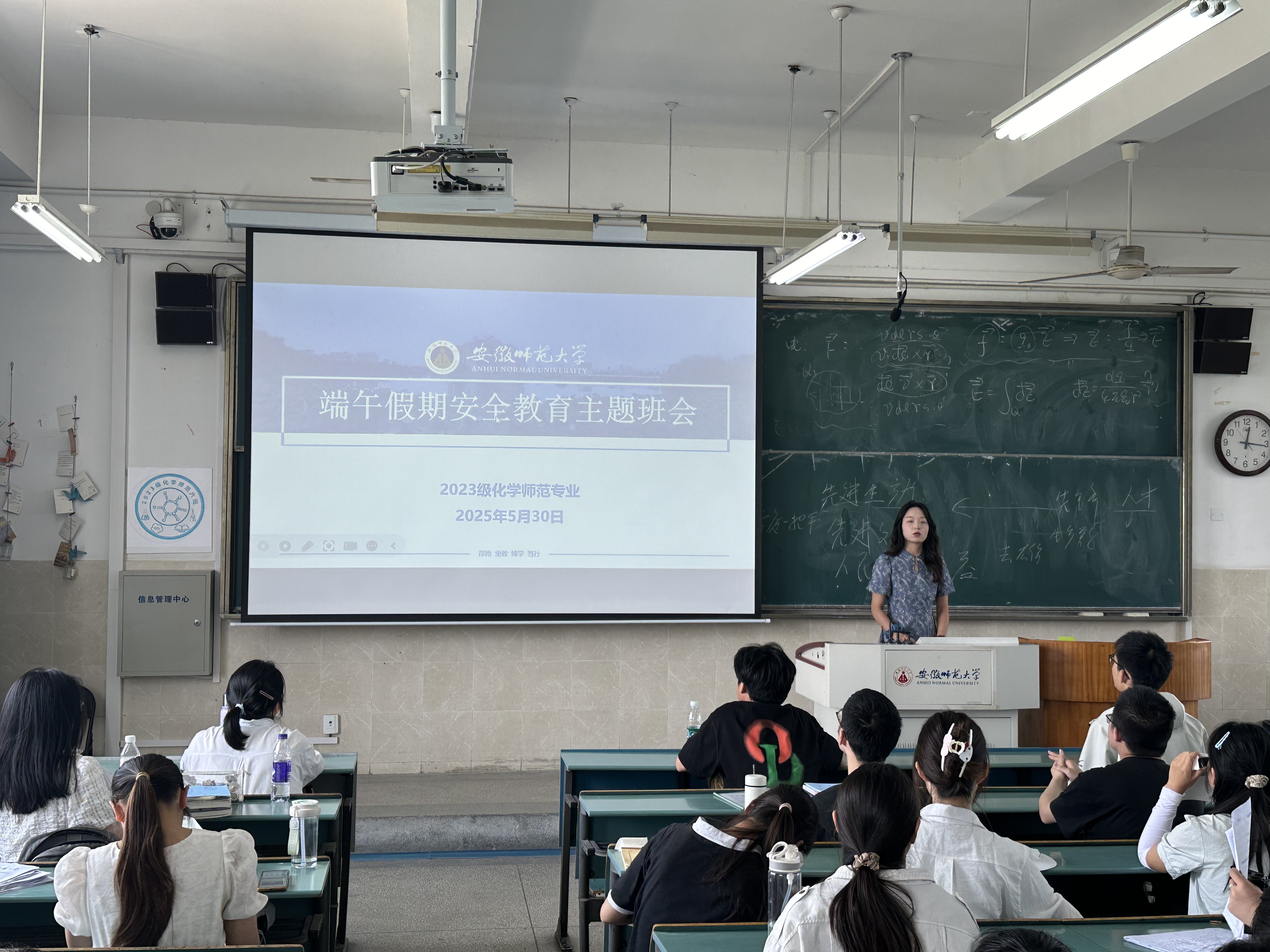 为增强学生安全意识,确保端午假期安全稳定,营造平安祥和的节日氛围,2023级化学师范专业于5月30日成功召开了端午假期安全教育主题班会。本次班会由辅导员王霞主持,全班同学参加。