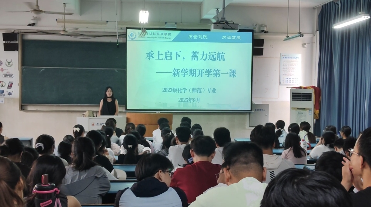 段雨含、王霞)新学期伊始,2023级化学师范专业以“承上启下,蓄力远航”为主线,由辅导员王霞老师组织开展了一场内容充实、形式多样的“开学第一课”主题班会,助力同学们快速调整状态,以积极面貌投入大三这一关键学年的学习生活。