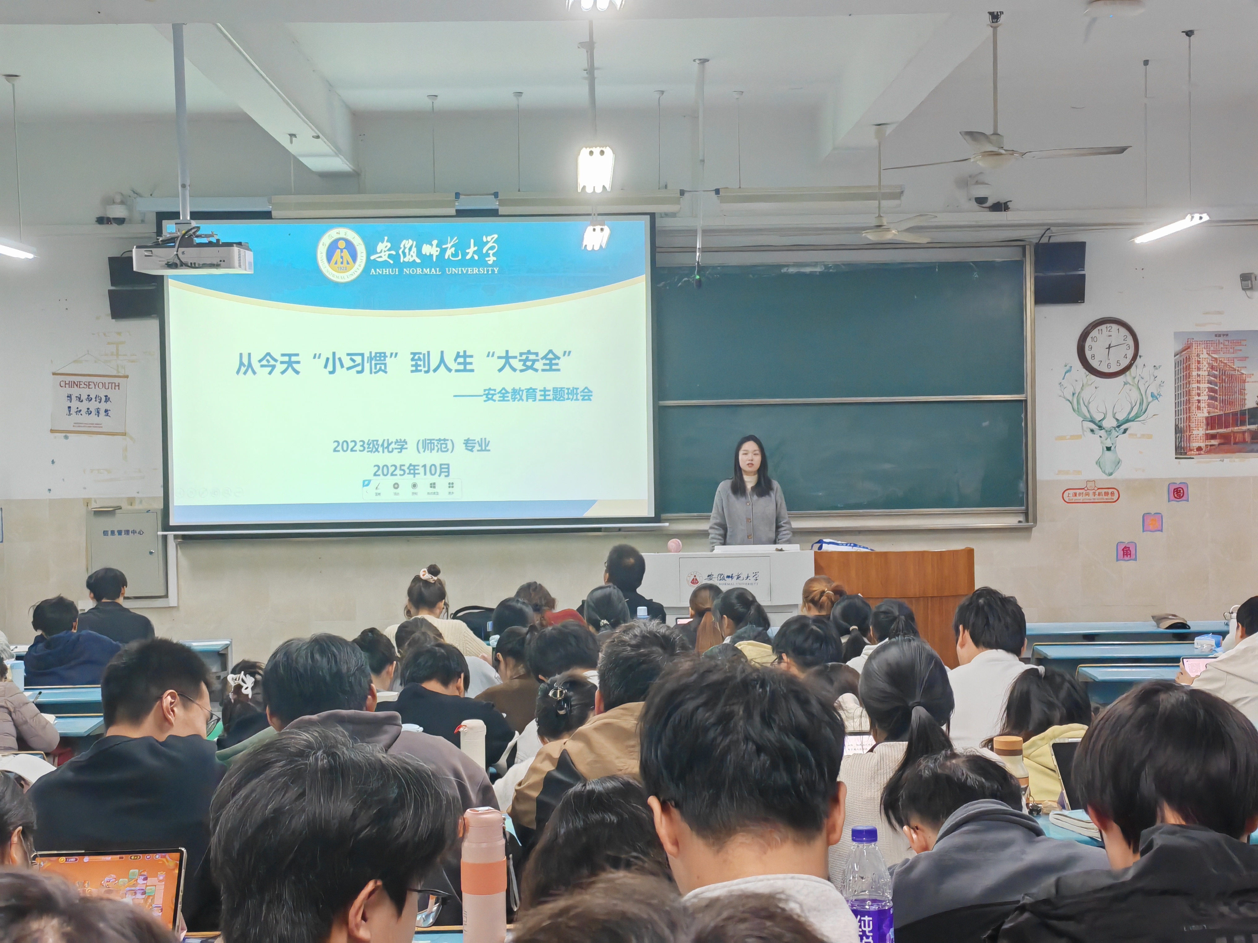 段雨含)为强化学生安全意识,培养良好安全习惯,2025年10月,2023级化学(师范)专业开展“从今天‘小习惯’到人生‘大安全’”安全教育主题班会,围绕宿舍安全、交通安全、网络安全等多方面展开深入讲解,为学生筑牢校园安全防线。