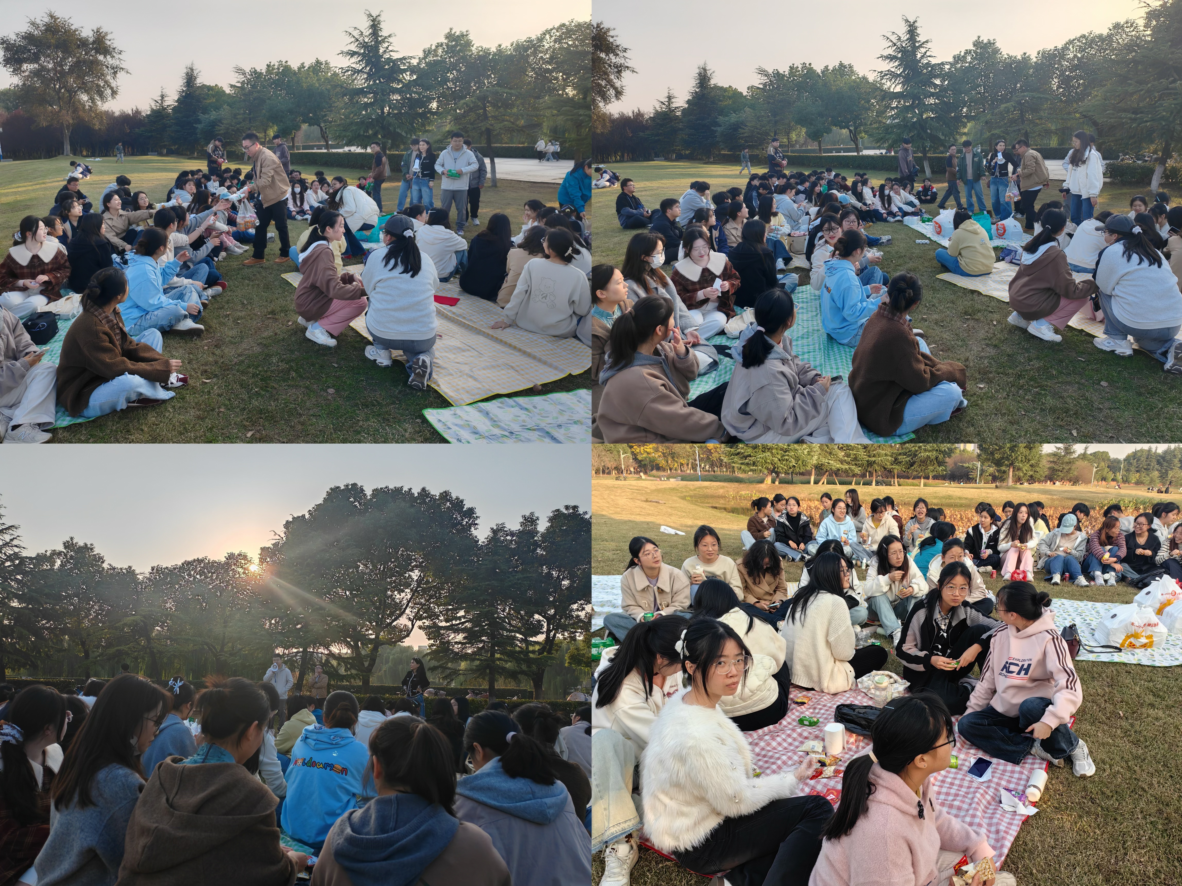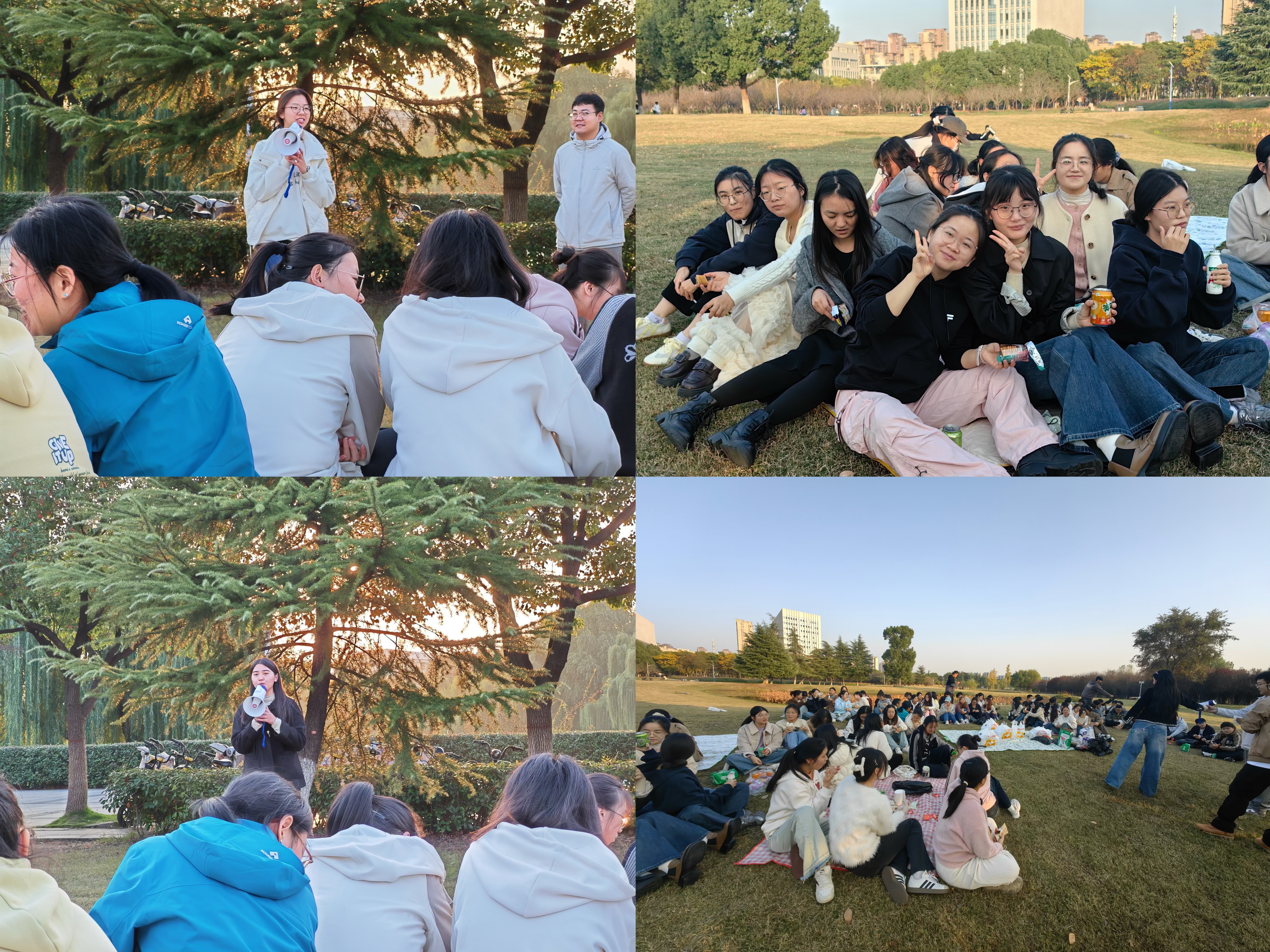 话音刚落,同学们便踊跃分享——有人谈及在学科竞赛中斩获佳绩的激动,有人回味运动会上为班级荣誉奋力奔跑的热血,有人回想和朋友一起出去旅游的幸福时光,有人细数与挚友在图书馆并肩学习、在食堂分享美食的温馨日常,也有人感念在迷茫时好友的陪伴、师长的指引,这些温暖瞬间成为前行的底气。真挚的分享里,既有大三学子的专业成长,也有对青春情谊的珍视。一个个鲜活的故事在草坪上流淌,笑声与掌声交织,将现场氛围不断推向高潮。