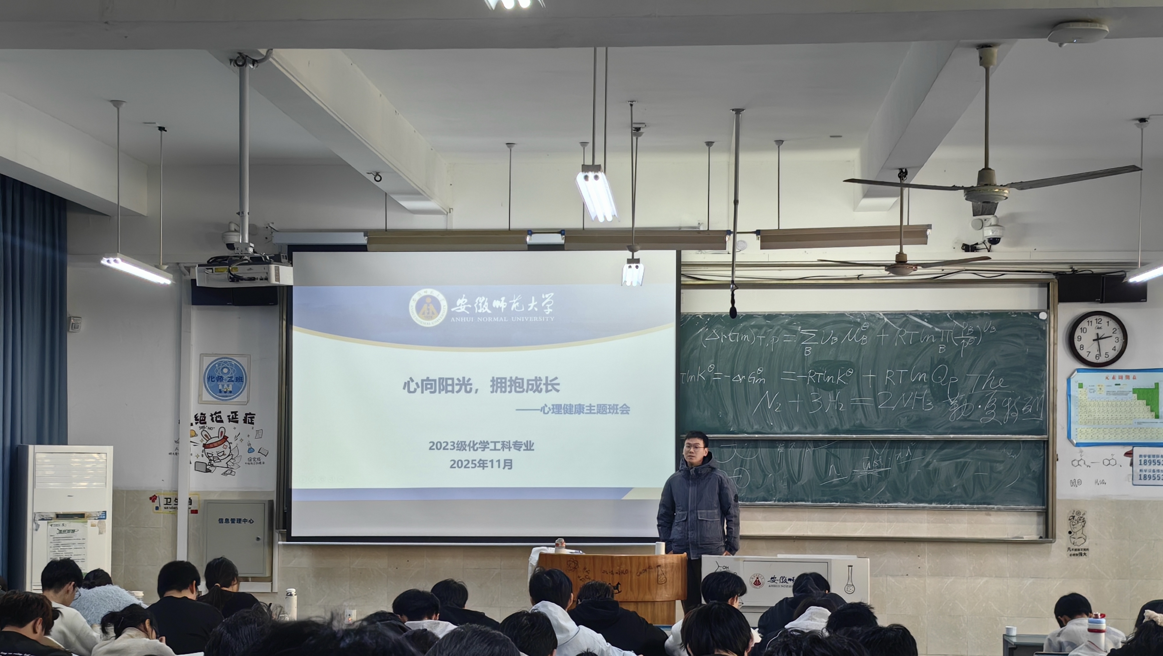 为切实关注学生心理健康,帮助大三学子平稳应对学业关键期与成长新阶段的双重挑战,11月21日-24日,2023级化学工科专业以班级为单位,分别召开“心向阳光,拥抱成长”心理健康主题班会。班会由辅导员梁成主持,全体学生参会。