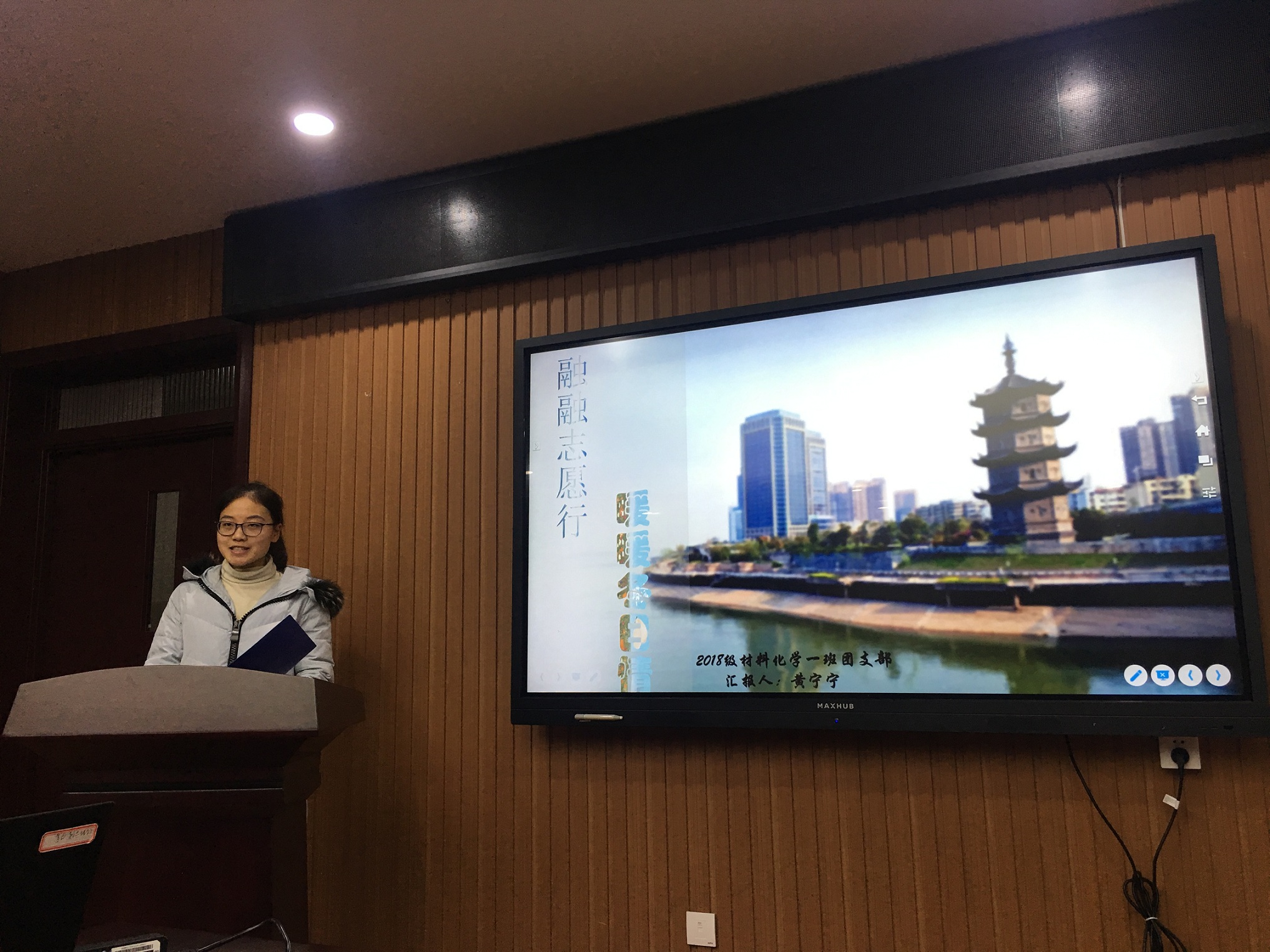 本网讯(18材化 陈凯凯)“山对面蓝堆翠岫,草齐腰绿染沙洲”。在经历将近一个月的连绵阴雨后,赭画青山,津展绿水呈现一派春日的生机与盎然。为增强学生热爱集体、关心他人、敢于奉献的先进意识,加强班集体的思想道德建设,2018级材料化学一班举办了“暖冬活动汇报”和“雷锋主题活动”的“早春之行”。 “乱花渐欲迷人眼”,百花逐绽竞争妍。3月4日,化学与材料科学学院于礼勤楼702组织召开了2019年寒假社会实践活动“我的暖冬故事”交流分享会。出席本次会议的有学院团委书记王国良、新生辅导员陶勇、院团委负责人刘健晨以及2017级与2018级各团支部社会实践队员代表,会议由2017级梅本星同学主持。在本次活动中,在团支书黄宁宁的带领下本班荣获最暖团支书的荣誉称号,而黄宁宁本人所在的团队也在本次活动中荣获“最暖先锋”的荣誉称号。 情蕴芝兰芳自醇,心念桃李总是春。为展现当代大学生精神风貌,发扬雷锋精神。材化1班于3月7日下午16点在行知楼2030103顺利举行“学习雷锋精神“主题团日活动,材化一班在团支书黄宁宁的主持下,共同参与了此次活动。 活动伊始,材化1班集体观看了雷锋先进事迹纪录片,一幕幕展现时代的感人事迹,一份份触动灵魂的炽热情感以时代的号角,鼓动着吾辈心念感恩、协同奋进,以雷锋为标杆,以时代为指导,践行奉献、友爱、互助、进步的志愿服务精神,倡导文明和谐的班级风貌,构建材化的美好明天。 雷锋引领着那个特殊时代精神载体和符号,在这个高速发展的时代,雷锋精神是否过时成为当代的焦点,我班以此为根据展开激烈的辩论。由A、B、C三组分派三名代表参加此次辩论活动,最终C组以绝对的优势取得了最终的胜利。雷锋精神作为民族的灵魂支柱,是对中华民族传统美德的继承与升华,具有重要的时代精神,愿通过此次辩论赛,增强材化一班的集体观念和奉献精神。 莹莹花津水,袅袅赭山烟。以时代为马,雷锋为杆,穿上轻装,让我们一起开启心灵的早春之行吧!