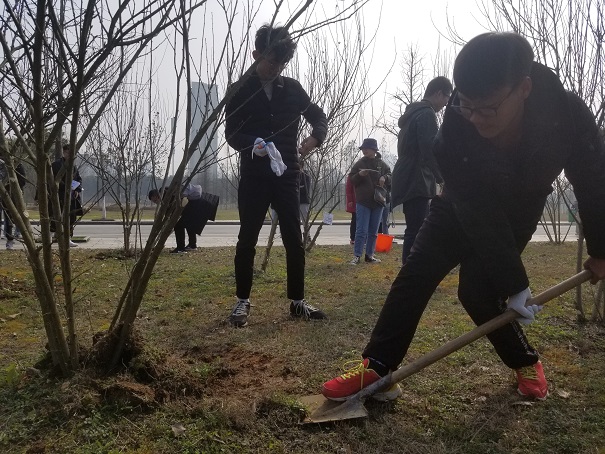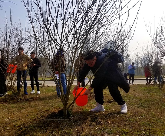 3月10日上午,17级材化2班积极参加由环境保护协会主办的主题为“绿色人文、和谐校园”的植树节活动。