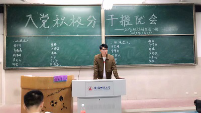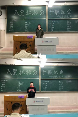 推优会正式开始前,由辅导员介绍会议主要流程与选举要求,重申纪律问题,强调公平、公正、公开地选出对集体建设有贡献的同学。从材化二班候选人开始,候选者依次主动上台进行宣讲,以“入党动机”、“参加推优会的原因”、“如果入选如何做”、“如果未入选如何做”四个重点为中心展开自己的小演讲。在长达两个小时的会议中,有的讲述了自己祖辈的优秀品质及对自己的影响;有的结合个人成长经历叙述自己的心路历程;有的回顾入学半年来的种种反思自己的长处与不足。有人略微紧张;有人情绪激动;有人侃侃而谈。22位候选人淋漓尽致地表达了自我对成为入党积极分子的意愿与想法,台下的同学们认真聆听,若有所思。