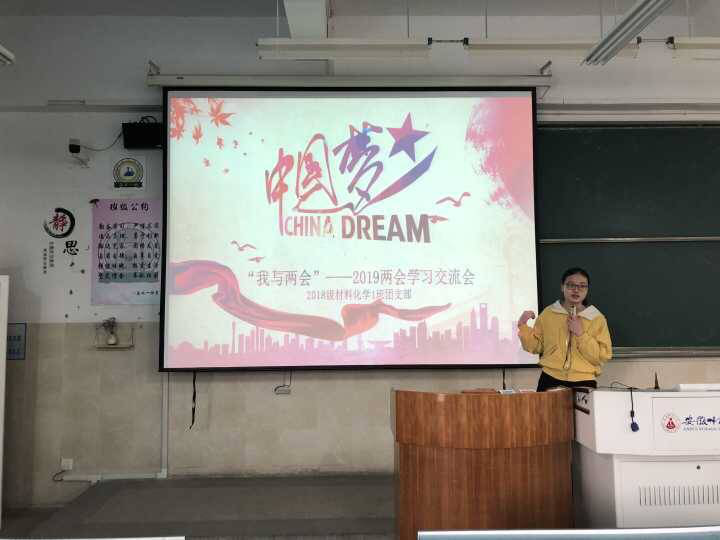 本网讯(18材化一班 孙娟)为深入贯彻学习“两会”精神,喜看祖国发展,2019年3月19日下午,2018级材料化学一班于2010308展开了 “我与两会”的主题团日活动。本次活动由团支书黄宁宁主持进行,活动共分四部分进行:两会小课堂、知识小竞赛、经典品读、我看热点。