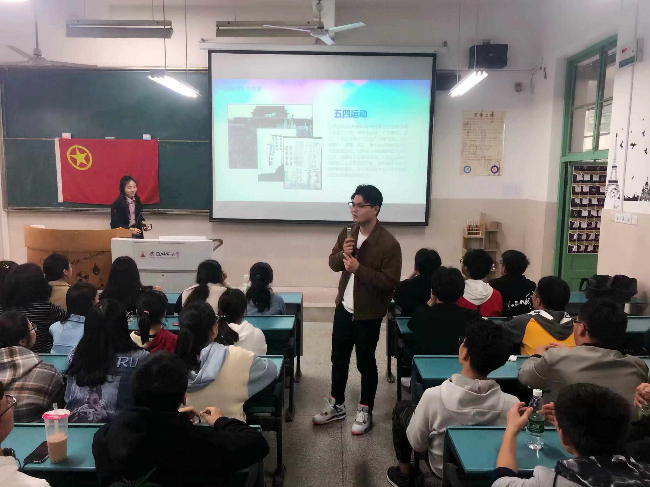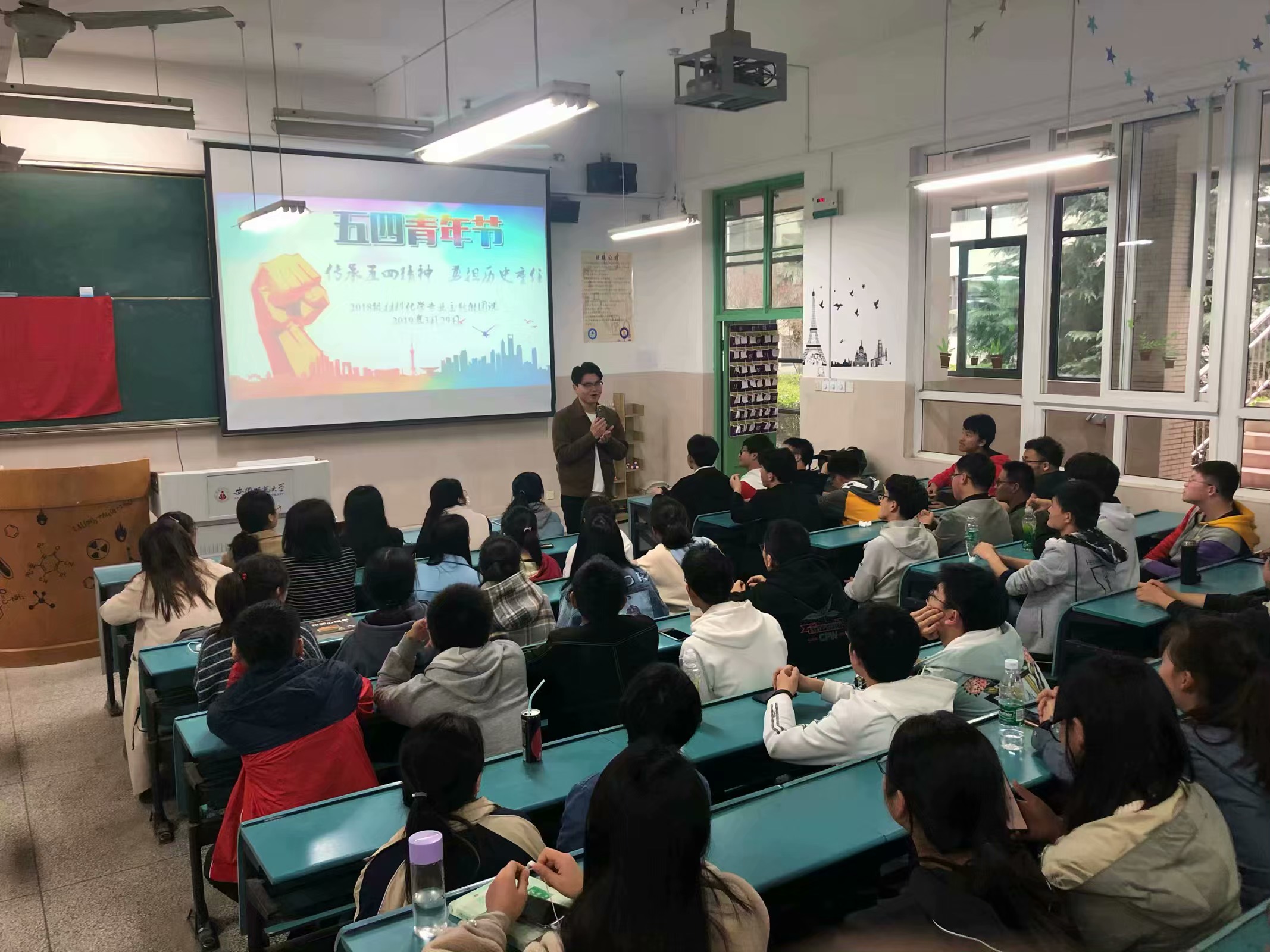 3月29号下午,本班在固定教室开展以"传承五四精神,勇担历史重任"为主题的微团课活动,此次微团课由辅导员陶勇主讲,18级材料化学二班同学全体参与。辅导员向同学们介绍了五四历史事件以及五四青年节的由来,浅谈了大学生所要学习的五四精神。辅导员深入了解了我们目前对于大学生活的适应情况,探讨了我们对未来生活的规划。本次班会简洁明了、意义深刻。虽然只有15分钟左右,但是却充分表达了我们对于五四青年人的敬仰,也使我们再一次深刻的思考了自己的大学生活以及对未来生活的规划。本次班会圆满成功,未来将共当勉励。