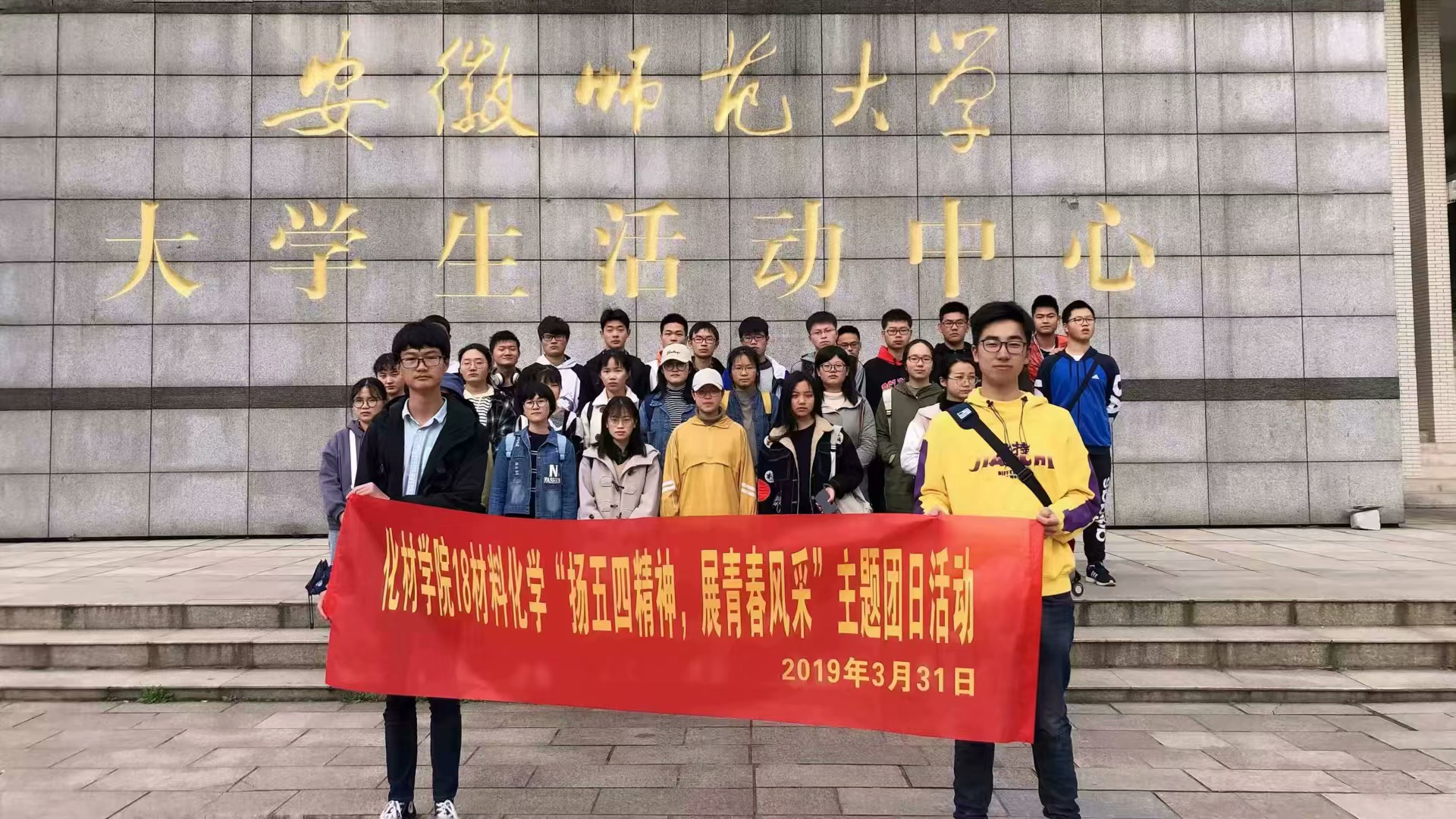 本网讯(18材料化学 王颖 郑瑶)伴随着和煦的春风,五四青年节也将到来,在院团委、辅导员老师的指导下,材料化学二班于3月29日组织了一场主题为“青春心向党,建功新时代”系列团建活动。本次活动由材料化学二班团支部组织,活动地点包括芜湖市博物馆、色情视频 图书馆东门前广场以及行知楼教室,材化二班同学全员积极参与了这次活动,用心感受了在中国共产党领导下发展的祖国。