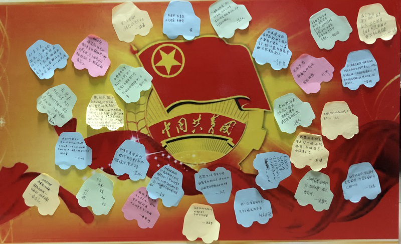 此外,支部在班级官Q上开启“五四微话题”专栏,同学们在三个话题下踊跃留言,说出自己的梦想与目标;同时,纸质版活动感悟专栏随之开启,大家以团小组为单位,聚在一起讨论“如果回到那个时代最想干什么”、“联系自身实际谈谈你对青春正能量的想法”、“通过今天的活动你对五四精神有什么新的认识”等三个话题,在卡片上写下自己的感受。在严肃而不失活泼的氛围中,完成了一场心与心的交流。