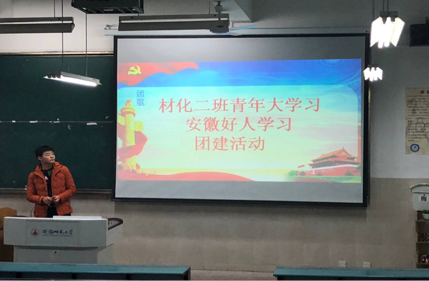 本网讯(18材化化学 严殊颜)12月10日下午两点半,在2030103教室,材化二班全体同学齐聚开展青年大学习暨安徽好人团建活动,在团支书张强的主持下,同学们认真学习好人精神,都有了不小的收获。