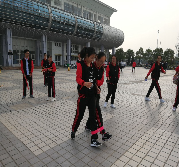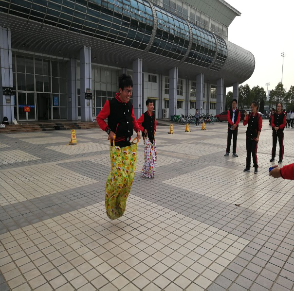 游戏分为四个环节分别是袋鼠跳、能量传递、两人三足、胸口贴纸跑,最先完成的队伍获得优胜。开始的号令一下,我们每一名同学倾尽全力完成自己的任务,有失败,有跌倒,也有不甘。但在我们每一位同学的脸上都洋溢着欢乐的笑容,没有一个人轻易说放弃,一阵阵加油呐喊的声音充斥了整个体育场。